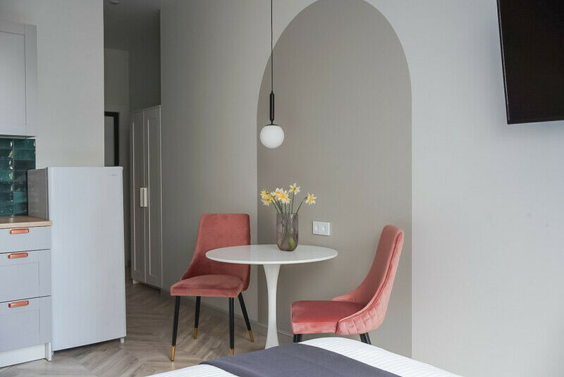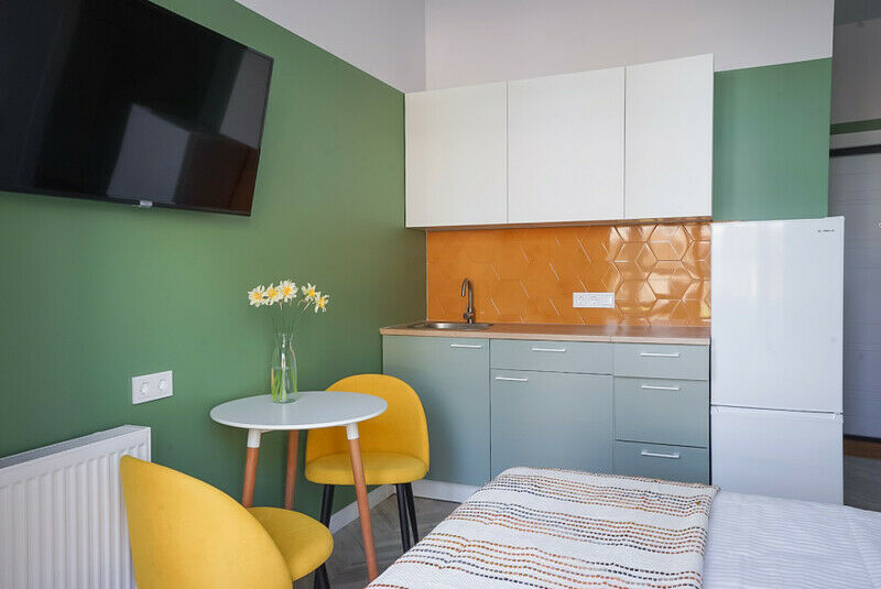 Самый центр города Калининграда, дом находится в парковой зоне. В студиях сделан стильный и функциональны ремонт и продумана каждая деталь. Все для удобства: двуспальная кровать с пушистым матрасом. Белоснежное постельное белье и банные принадлежности. Кухня укомплектована полностью всевозможной техникой и посудой для проживания. В ванной комнате есть: душ, фен. Высокоскоростной Wi-Fi, цифровое телевидение IP-TV. Особое внимание уделяется чистоте в целом и каждому предмету и поверхности в частности. Во дворе современная детская площадка, фонтан, единственный дом в центре и в парковой зоне, тишина и свежий воздух обеспечены.