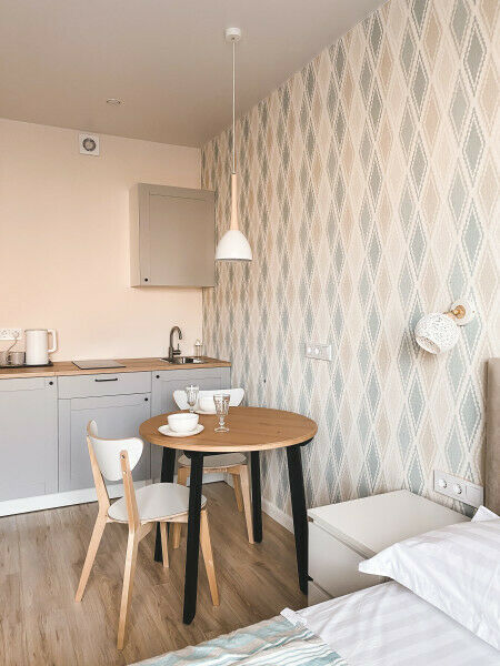 Стильные студии в центре у «Верхнего озера». Современный интерьер, идеально сочетается с удачным расположением. В пешей доступности парк Юность, набережная. А до площади и большинства достопримечательностей 20 минут спокойным шагом. Во дворе хорошие детские площадки для маленьких гостей. Удобное сочетание как для людей бизнеса, так и для семей.