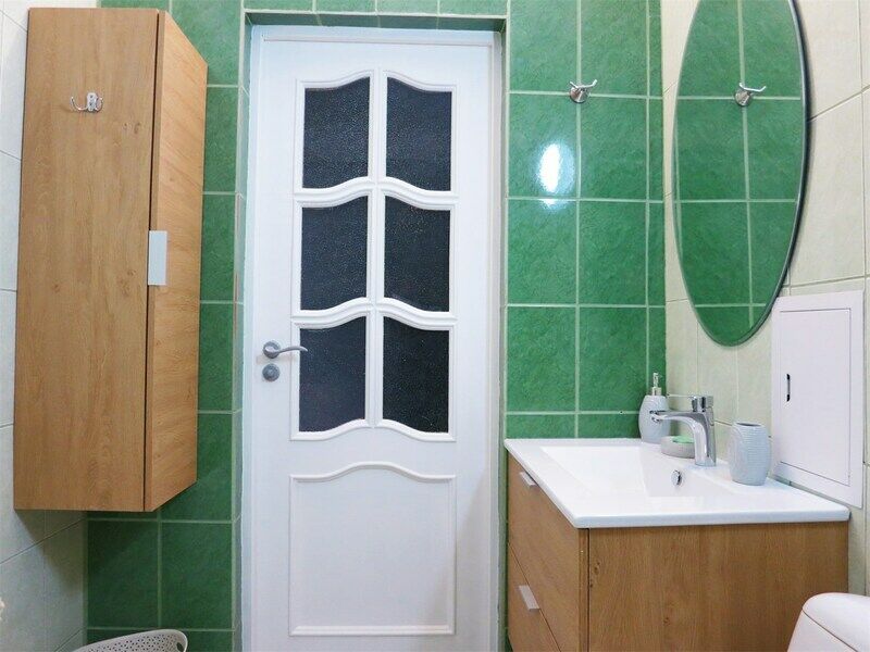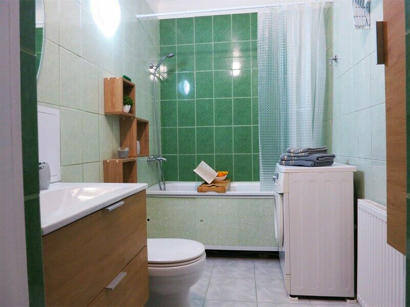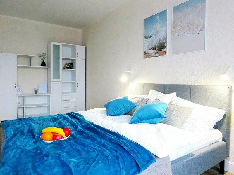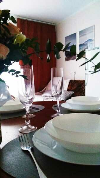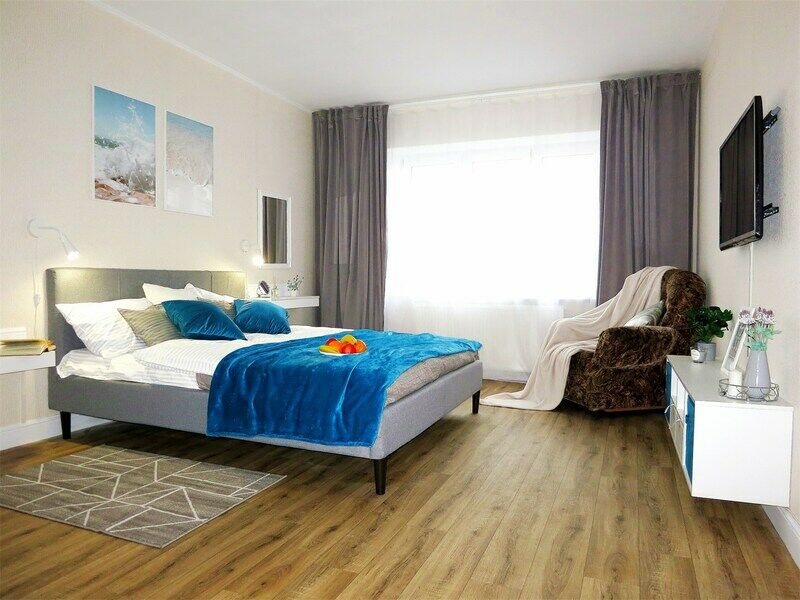 Апартаменты разместились в девятиэтажном жилом здании, оснащенном лифтом. Комфортабельная стильная квартира, способная принять от двух до четырех гостей, состоит из одной спальни, кухни-гостиной и ванной комнаты, где для гостей подготовлены косметические наборы. Апартаменты оснащены всем тем, что нужно для длительного пребывания: в номере есть телевизор, стиральная машина, холодильник, посудомоечная машина, микроволновка, пылесос, гладильные принадлежности. А оставаться на связи гостям позволит высокоскоростной беспроводной интернет.