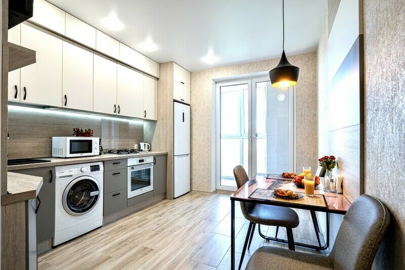 Квартира полностью укомплектована всей необходимой мебелью и техникой: 2-спальная кровать, диван для отдыха, телевизор, стиральная машина, сушилка, фен, утюг, гладильная доска, зонтик, высокоскоростной WiFi. На кухне холодильник, микроволновая печь, электрочайник, плита, вся посуда в достаточном количестве. Свежее хлопковое белое постельное бельё и белые махровые полотенца.