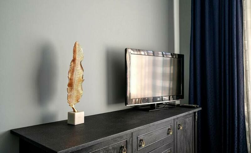 Санузел с ванной, ТВ, оборудованная кухня.