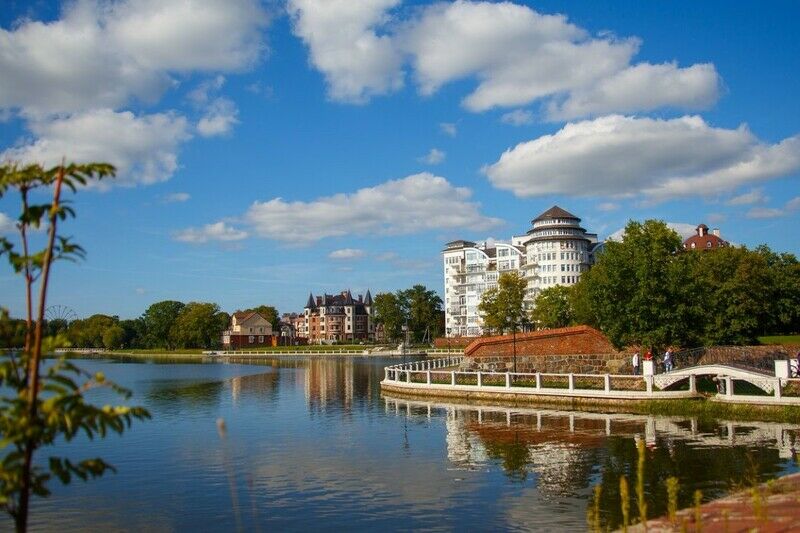 Поездом до ж/д вокзала Калининград-Южный, пешком 450 м до остановки «Проспект Калинина», далее на автобусе № 39,11,146,147,29,37 или на маршрутке № 146к,150,155,15964 до остановки «Центральный рынок», пешком 490 м.