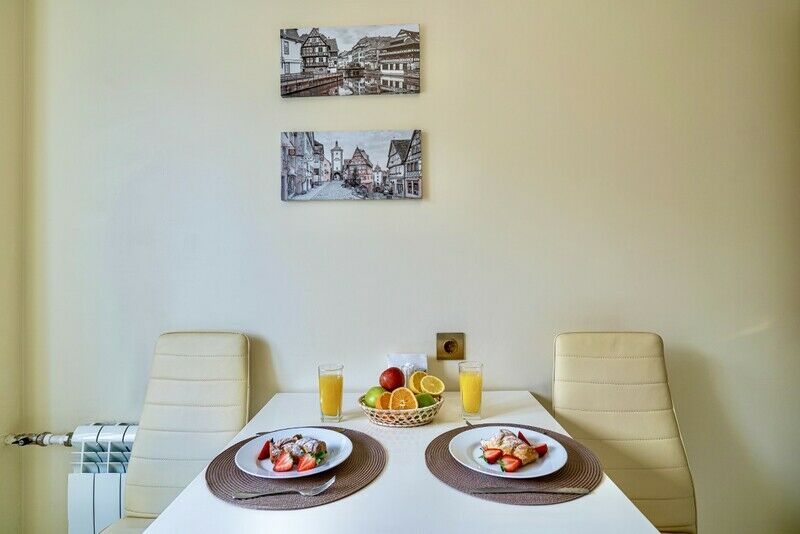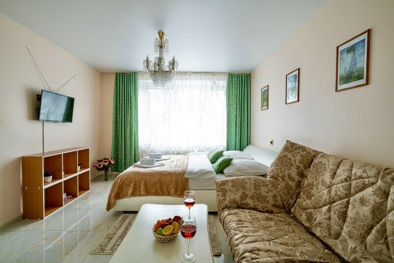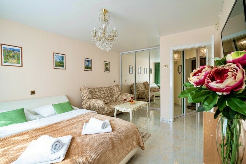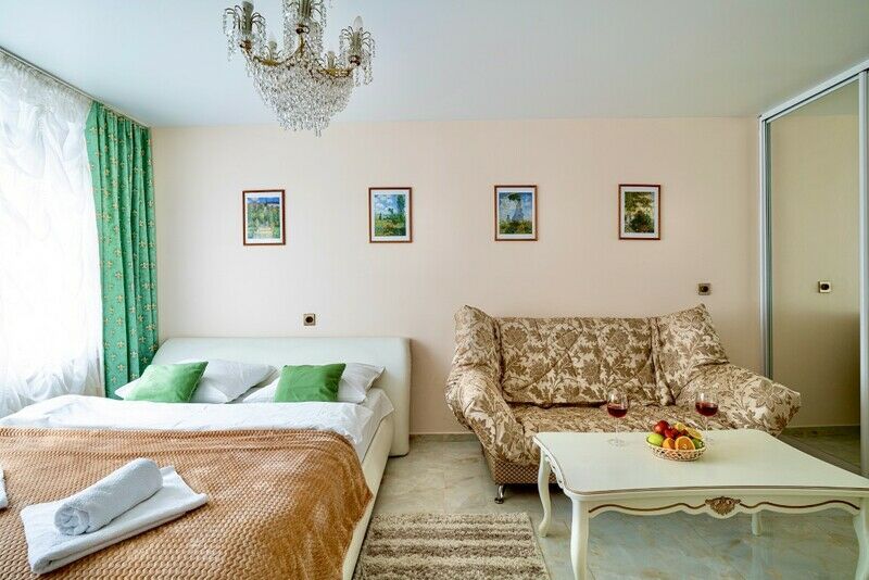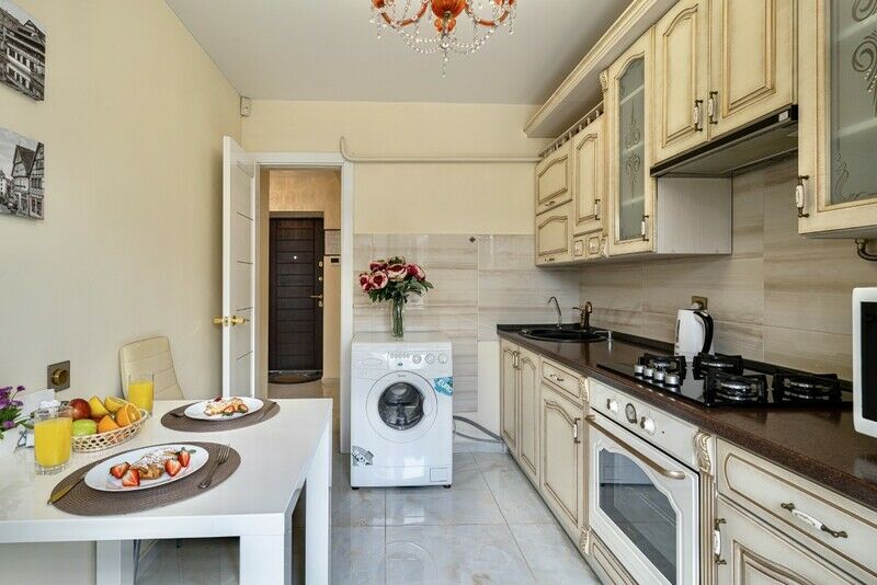 Квартира полностью укомплектована всей необходимой мебелью и техникой: большая 2-спальная кровать с удобным ортопедическим матрасом, диван для отдыха, телевизор, стиральная машина, сушилка, фен, утюг, гладильная доска, зонтик, высокоскоростной WiFi, на кухне холодильник, микроволновая печь, электрочайник, плита и духовка.
