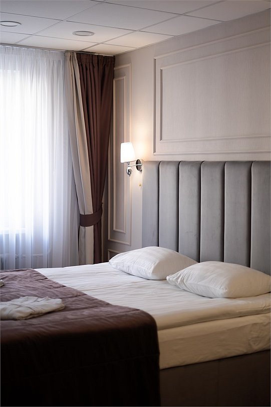 Номер после капитального ремонта, комфортный и свежий, двухкомнатный (комнаты смежные), в одной комнате - две односпальные кровати, которые могут быть соединены в одну двуспальную, во второй - раскладывающийся двуспальный диванУслуги и удобства
