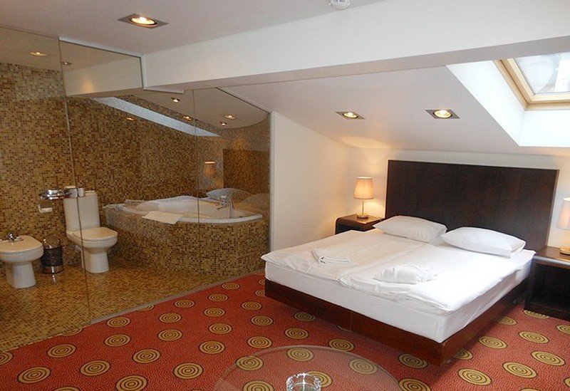 Санузел,душевая кабина,фен,кабельное ТВ,телефон,минибар,бесплатный доступ в интернет.