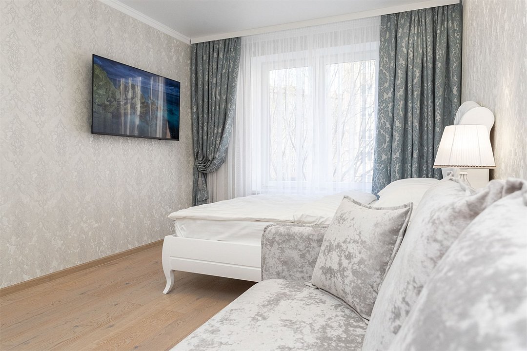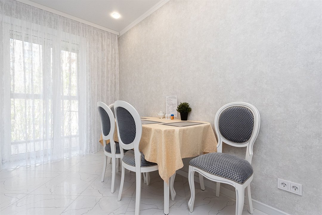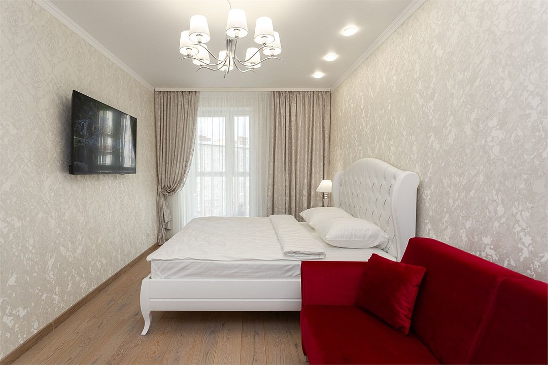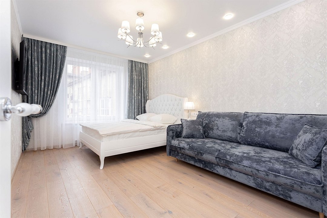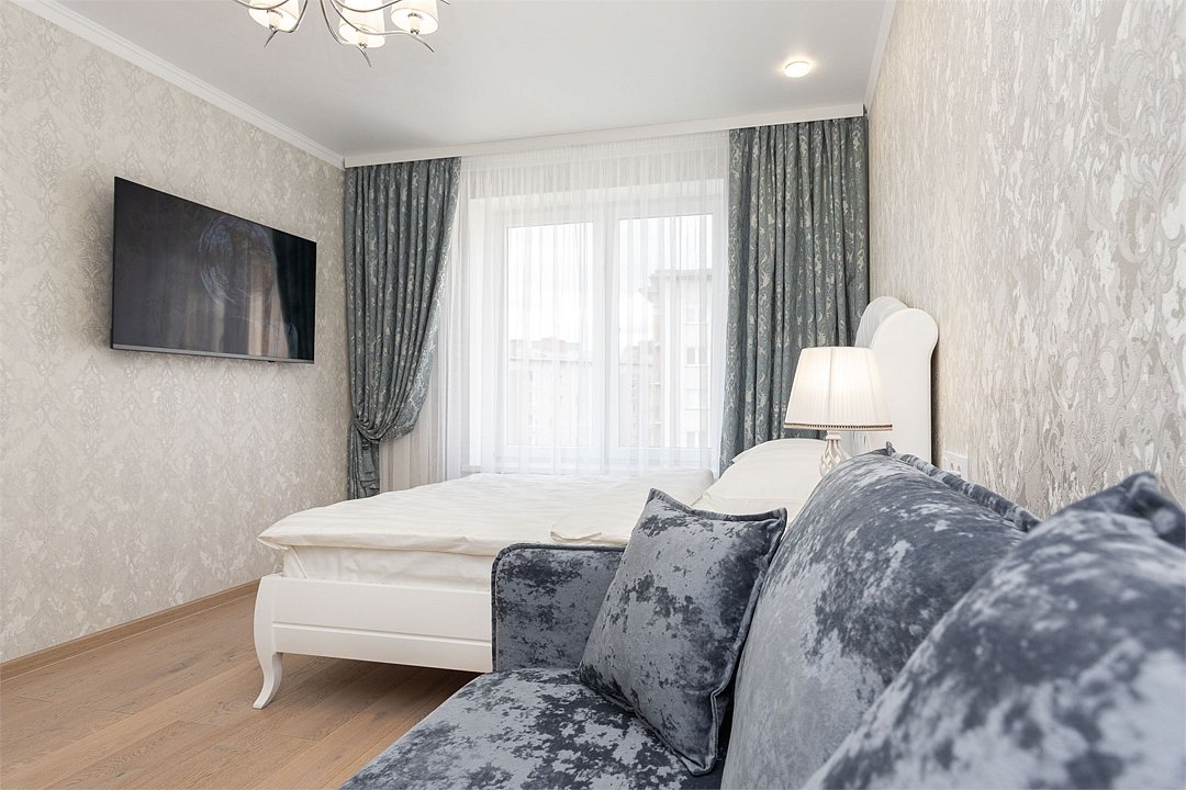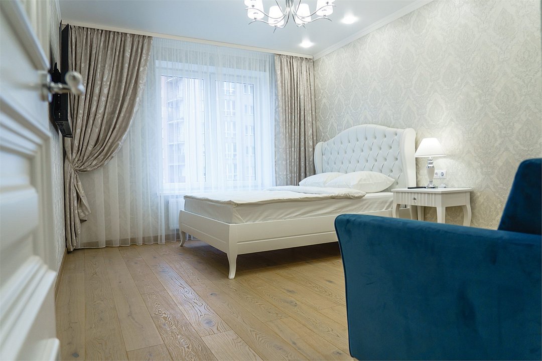 Apartment Classic - просторные, дизайнерские апартаменты со всеми современными удобствами, расположенные на улице Юбилейная, в 200 метрах от достопримечательности "Королевские ворота". Удобства: -В числе удобств стиральная машина, полностью оборудованная кухня, собственная ванная комната с бесплатными туалетно-косметическими принадлежностями, телевизор с плоским экраном и бесплатный Wi-Fi, а также чайник, утюг, гладильная доска, фен. - На территории обустроена детская игровая площадка. - Бесшумные лифты - Витражное остекление. - Бесплатная уличная парковка на территории дома. - Платная уличная охраняемая парковка в 10 метрах. В пешей доступности: 200 метров от достопримечательности "Королевские ворота". Достопримечательность "Королевские ворота" - одни из семи сохранившихся городских ворот Калининграда, выстроены в псевдоготическом стиле и внешне напоминают маленький замок. Дом, в котором расположены апартаменты, построен в 2019г. в 50 м от лесной зоны в тихом и престижном районе города. Рядом супермаркеты, аптека, суши-бар, пивной бар, развлекательный комплекс "Резиденция королей", ресторан "Базилик", остановка общественного транспорта. Наши преимущества: - Дизайнерский ремонт с применением исключительно немецких материалов. -Автономное отопление с применением системы водяного обогрева Теплый пол - Бытовая техника Bosch - Качественные гигиенические принадлежности для каждого гостя - Итальянское постельное белье - Ортопедические матрацы - Индивидуальный подход к каждому гостю. Если Вы цените свое время и деньги, привыкли к комфортному отдыху и хотите чувствовать себя как дома, Апартаменты Classic для Вас!Услуги и удобства