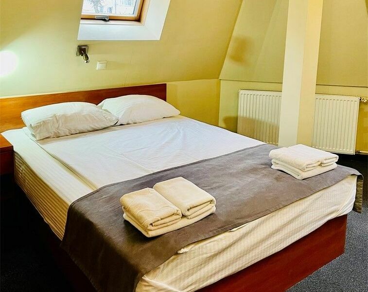 Двухэтажное здание отеля с третьим мансардным этажом включает в себе 14 однокомнатных номеров, рассчитанных на размещение одного или двух гостей. В номерах есть санузел с душем, телевизор ЖК, фен, холодильник.