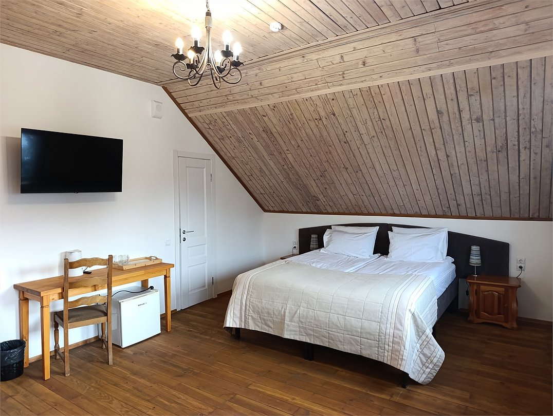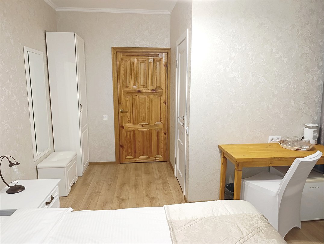 Номер предназначен для комфортного проживания одного или двух человек.Комната оформлена в спокойных тонах, оборудована двухспальной кроватью, шкафом. Отдельная ванная комната оборудована душевой кабиной. В номере вы можете воспользоваться беспроводным интернетом, кабельным телевидением рабочим столом, холодильником, чайником. Комплиментарно при заезде предоставляется вода, кофе, чай. Важная информация: Курение в номерах запрещено На территории есть беседка для курения Размещение с животными запрещеноУслуги и удобства