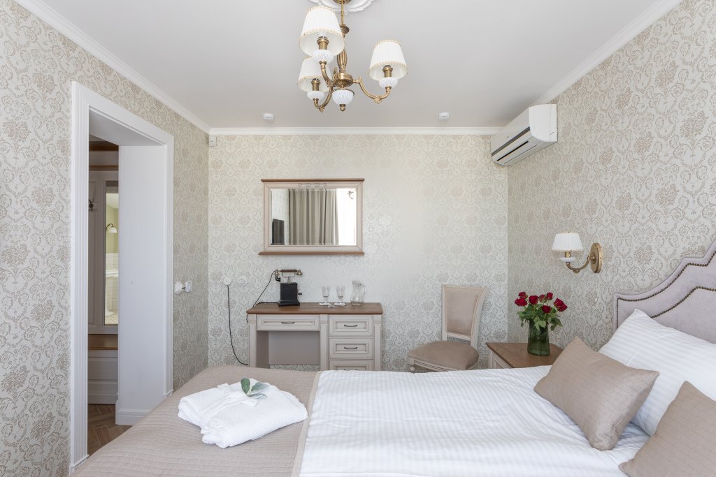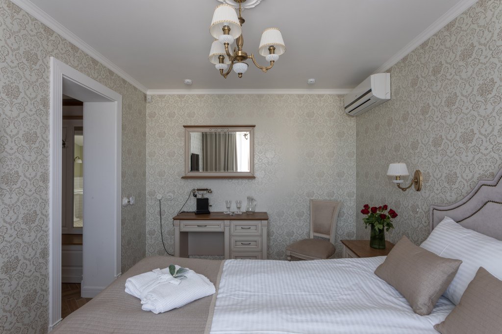 Номерной фонд гостевого дома состоит из 7 двухместных номеров, каждый из которых имеет уникальный авторский дизайн. В категории номера «Люкс» есть балкон и возможность установки дополнительной кровати. Каждому гостю предоставляются тапочки, халаты, предметы личной гигиены.