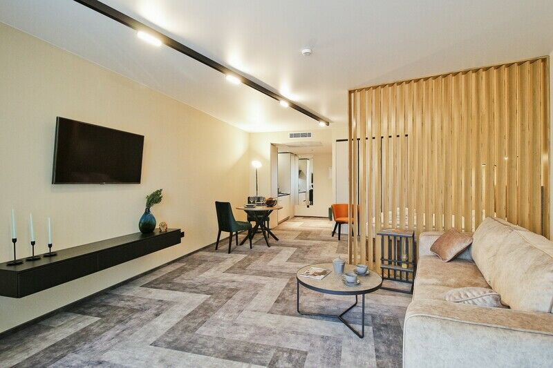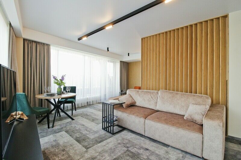 Спокойный минималистичный интерьер в теплой песчаной гамме отсылает к дюнам на побережье Балтийского моря. Натуральный дизайн и мягкие приглушенные тона интерьеров Lastadie Apartments создают неповторимую атмосферу сочетания стиля и комфорта.