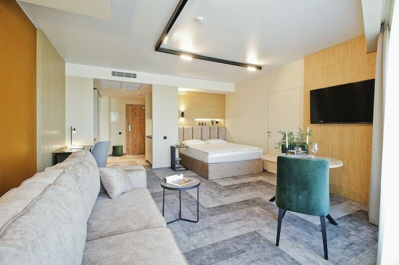 Немного раздосадовало наличие сквозной двери с соседними апартаментами - если соседи шумноватые, то их достаточно хорошо слышно.