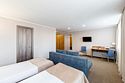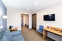 2-комнатный 2-местный номер общей площадью 34 кв.м. с собственной ванной комнатой. В номере имеется спальня с двуспальной кроватью (возможен вариант двух односпальных кроватей), а также гостиная комната, где расположен диван и письменный стол. В номере также находятся журнальный столик, шкаф-гардероб и холодильник.
