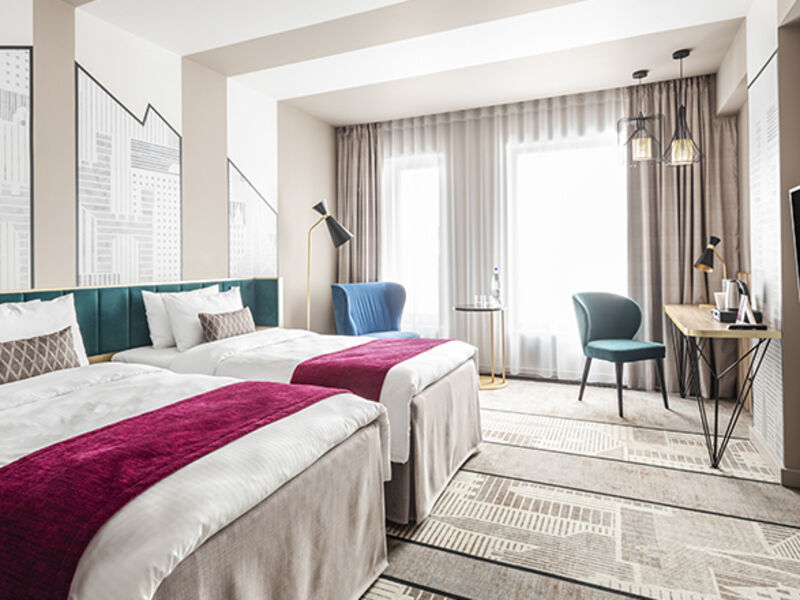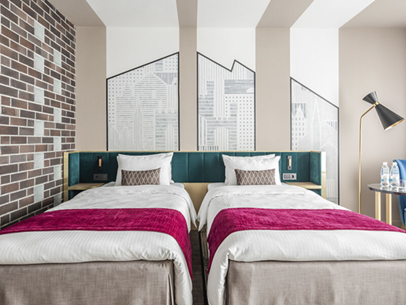 Здание отеля с интересным дизайнерским решением имеет обширный номерной фонд, рассчитанный на 334 человека. Стильные просторные номера, оформленные в пастельных оттенках с яркими цветовыми акцентами, хорошо меблированы и оснащены современной техникой – жк-телевизором, холодильником, феном, электрочайником. В каждом номере есть ванная комната с душем.