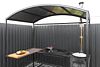 Гости могут воспользоваться 4 лежаками. На террасе имеется зона отдыха, где есть стол, стулья и двуспальный диван, колонка. Весь участок закрыт высоким забором.