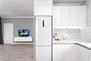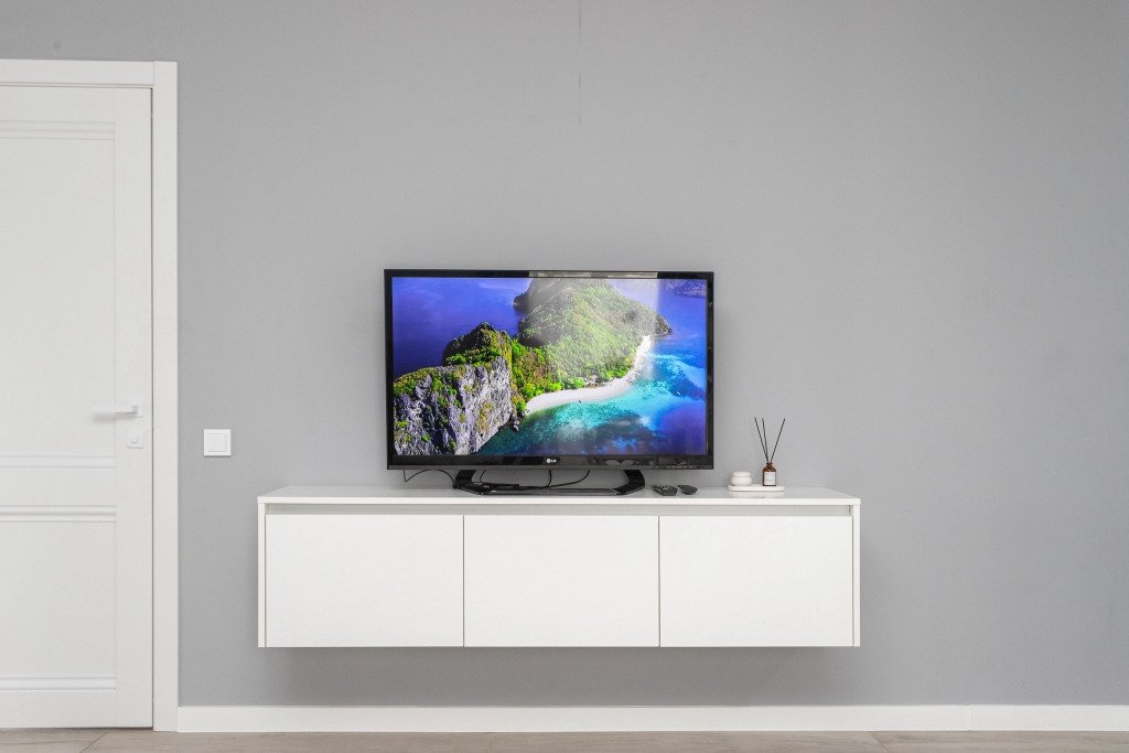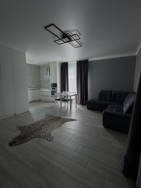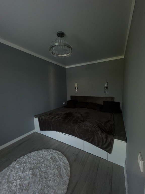 Гостиная оборудована телевизором и двуспальным диваном. В спальне есть кондиционер и двуспальная кровать. А также стиральная машина, гигиенические средства, фен в санузле.