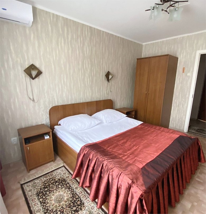 Двухместный номер стандарт с балконом с двуспальной или двумя полутораспальными кроватями. В номере: холодильник, телевизор, телефон, санузел ,ванна или душ. Балкон.Услуги и удобства