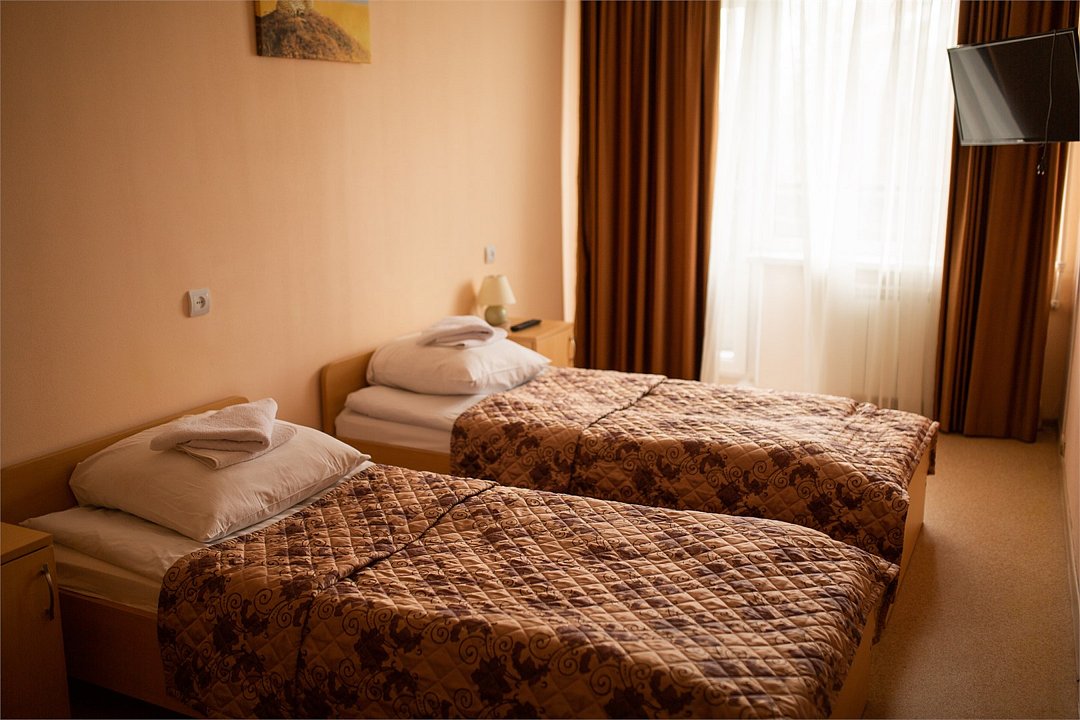 9-ти этажное здание гостиницы с лифтом возвышается в тихом и спокойном районе города. Обширный номерной фонд, рассчитанный на единовременное заселение до 245 человек, предлагает гостям удобные номера разной категории комфорта. В каждом из них имеется необходимая бытовая техника и собственная ванная комната, за исключением блочных номеров с общим санузлом.