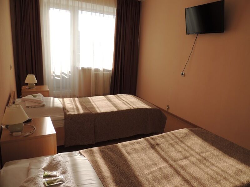 телевизор, холодильник, ванная комната, банные полотенца, балкон, две односпальные или большая двуспальная кровать, стулья, шкаф для одежды, зеркало, унитаз, питьевая вода, отопление, стаканы, стол, внутренний телефон, номер для некурящих, уборка номера, вешалки-плечики, мыло, можно с питомцамиВ номере
