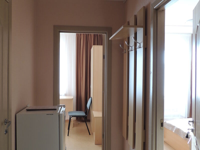 Трехместный с балконом эконом : одна комната с 2 односпальными кроватями и 1 комната с 1 односпальной кроватью. Эконом-вариант. Сан. узел на 2 комнаты. В номере: холодильник. Балкон.Услуги и удобства