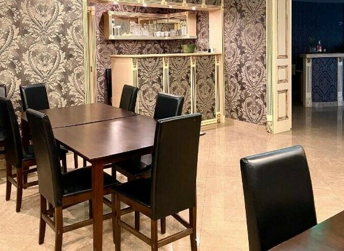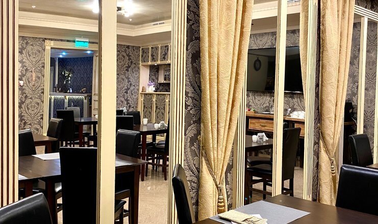 Площадь зала — 50 кв. м. Вместимость — до 35 гостей.