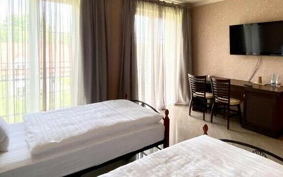 Путешествие с семьейОтличный гостевой домОстанавливались в данном гостевом доме с мужем вдвоем, встретили нас хорошо, приветливый персонал, очень красивый дом. Машину ставили во дворе, тихое место можно спокойно открыть окна и не будет слышно шумного города. Номера тоже достойные, все новое, чистое и уютное, кормили завтраками очень вкусно и много, мы наедались. В общем очень хороший вариант для размещения в данном городе, рекомендую этот домик!