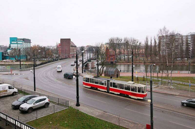 Самолетом до аэропорта г. Калининграда, далее на автобусе 224э до остановки гостиница Турист, далее на автобусе 21 до остановки Набережная ветеранов, далее пешком 145 м