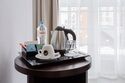 Комфортный современный номер, площадью 17 кв.м. В каждом номере расположены 2 односпальные кровати, которые по запросу гостей с лёгкостью превращаются в одну двуспальную. Поэтому номер прекрасно подходит как для одноместного, так и для 2-местного проживания. Из окон открывается вид на жилые дома, на парковку, либо боковой вид на озеро Верхнее.