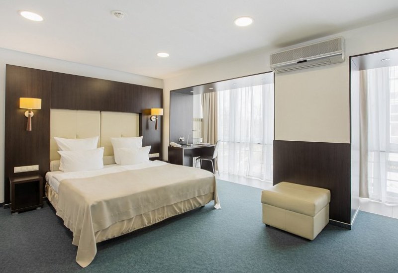 Номер категории «Джуниор Сиют» — светлый просторный номер с большим панорамным окном. Этот номер поразит гостей прекрасным видом из окна на прогулочную зону и живописное озеро Верхнее (бывший Королевский Пруд).