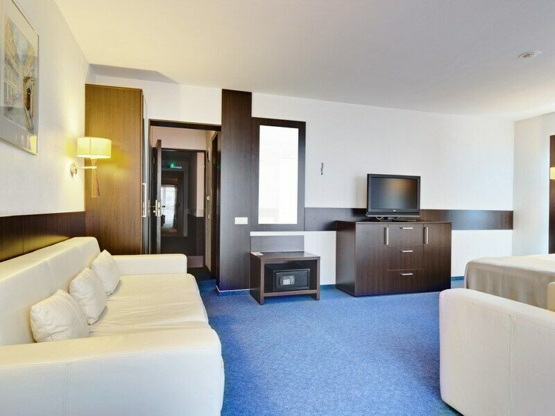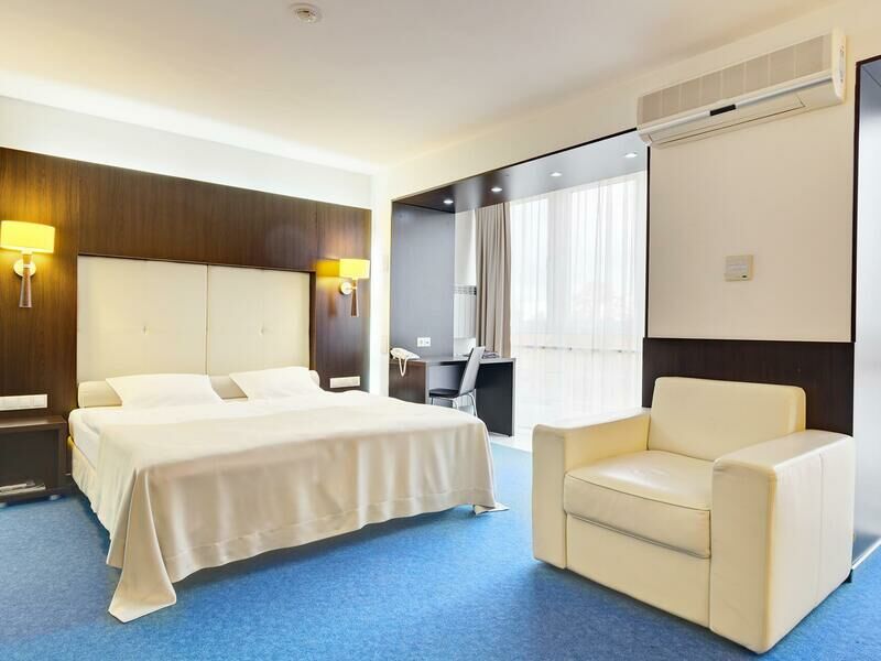 2-комнатный номер площадью 39 кв.м. прекрасно подойдёт как для деловой поездки, так и для комфортного отдыха. Номер разделён на две части: спальню с большой двуспальной кроватью и гостиную, состоящую из рабочей зоны и зоны отдыха.