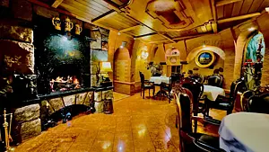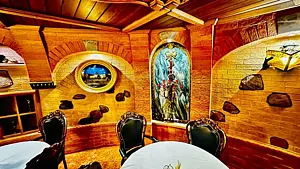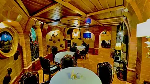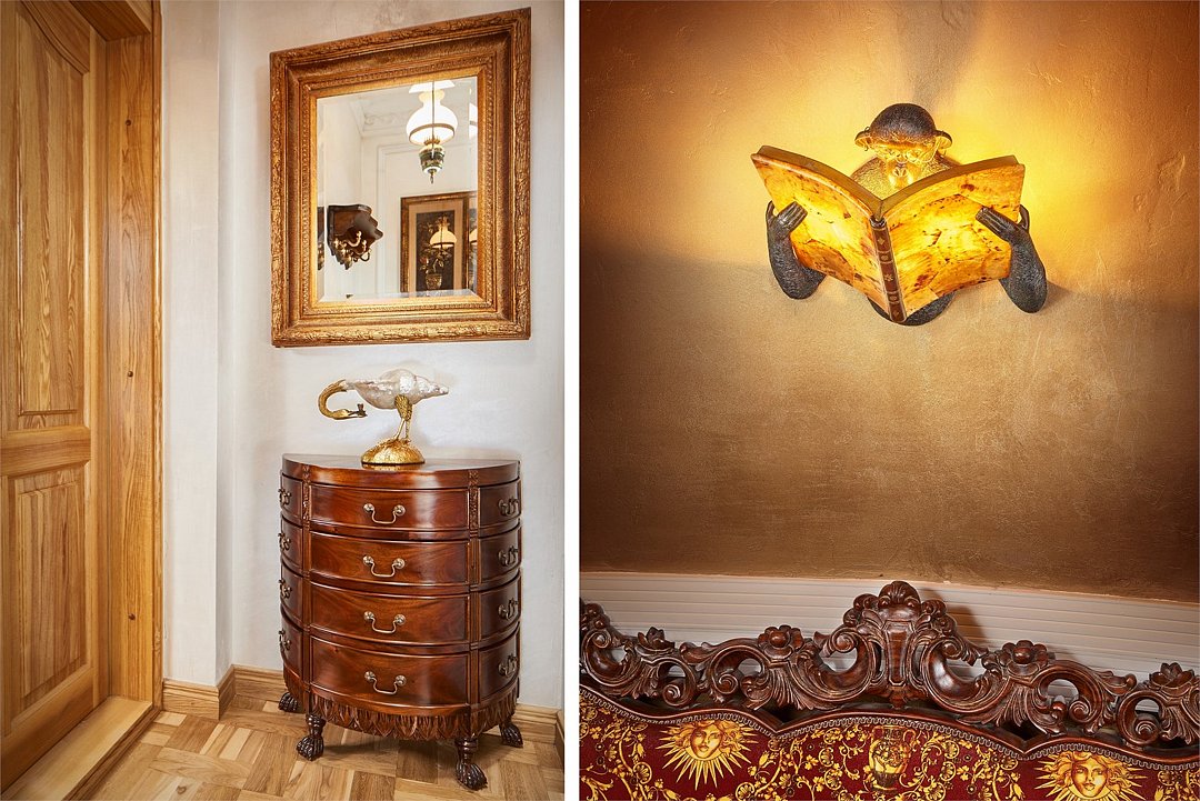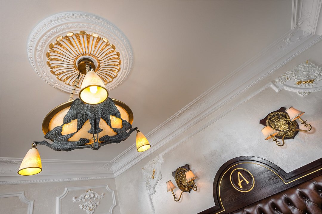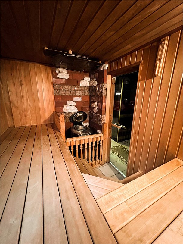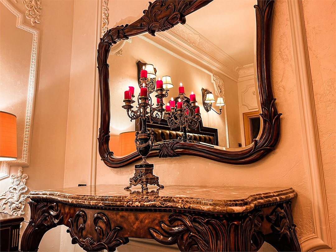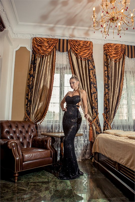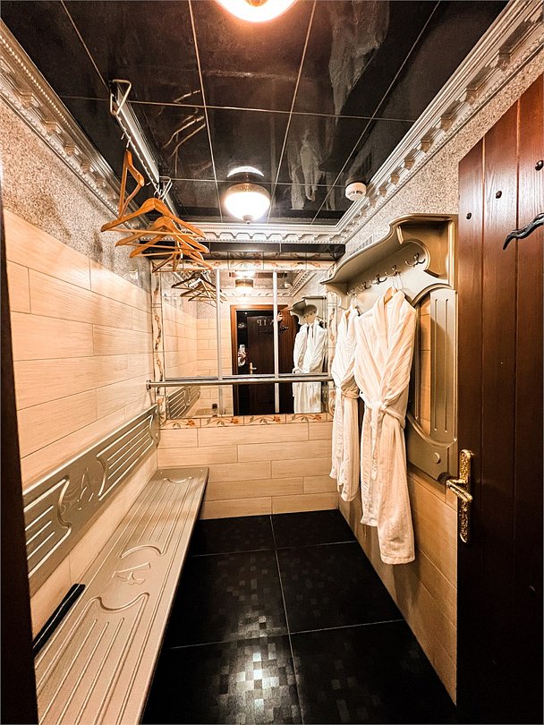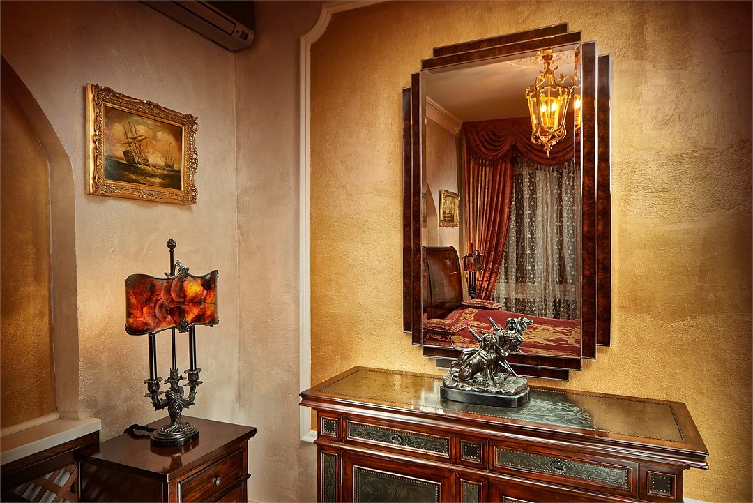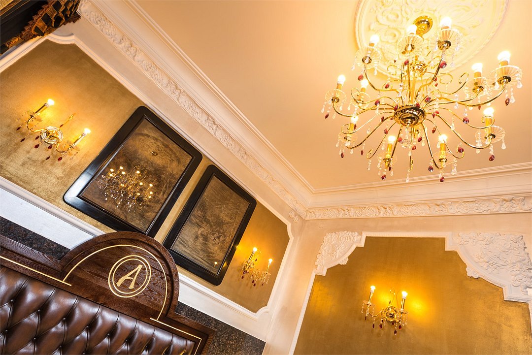 Двухуровневые апартаменты королевский люкс с гидромассажной ванной. общей площадью 60 квадратных метров, вилла рассчитана на двух человек. номер состоит: из каминного зала, спальни, и ванной комнаты. Роскошный интерьер создаёт ту степень фешенебельности, которую могут позволить себе аристократы. В ванной комнате установлена джакузи итальянской фирмы GLASS, объемом 400 литров - неотъемлемое условие для комфорта высокого уровня. Королевские апартаменты оборудованы, дорогой мебелью и декорирован предметами интерьера с ручной резьбой: бук, красное дерево, карельская береза, дуб. Авторские витражи, мозаики, люстры фирмы Swarovski придают интерьеру завершенность и уникальность. Бар в холодильнике платный.Услуги и удобства