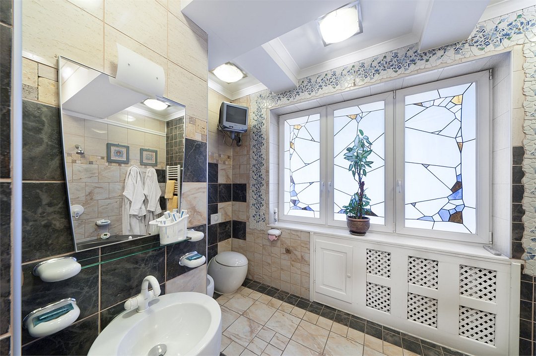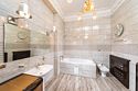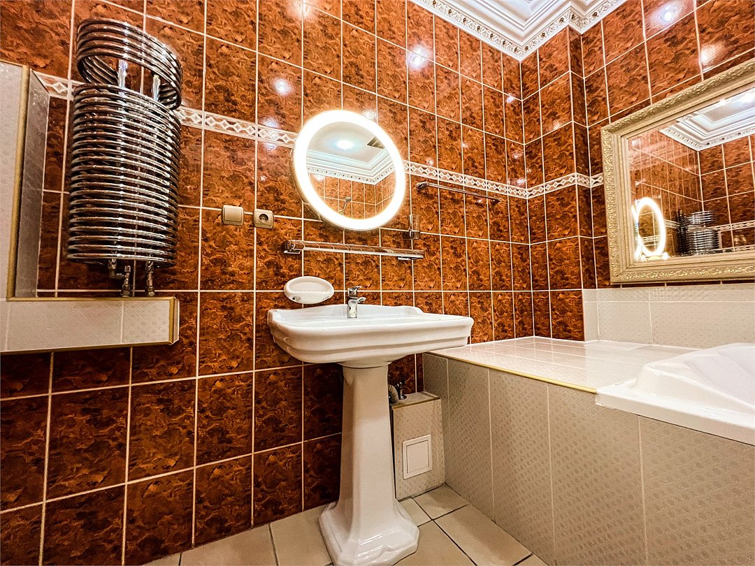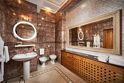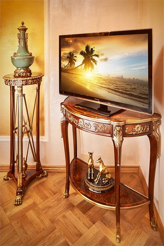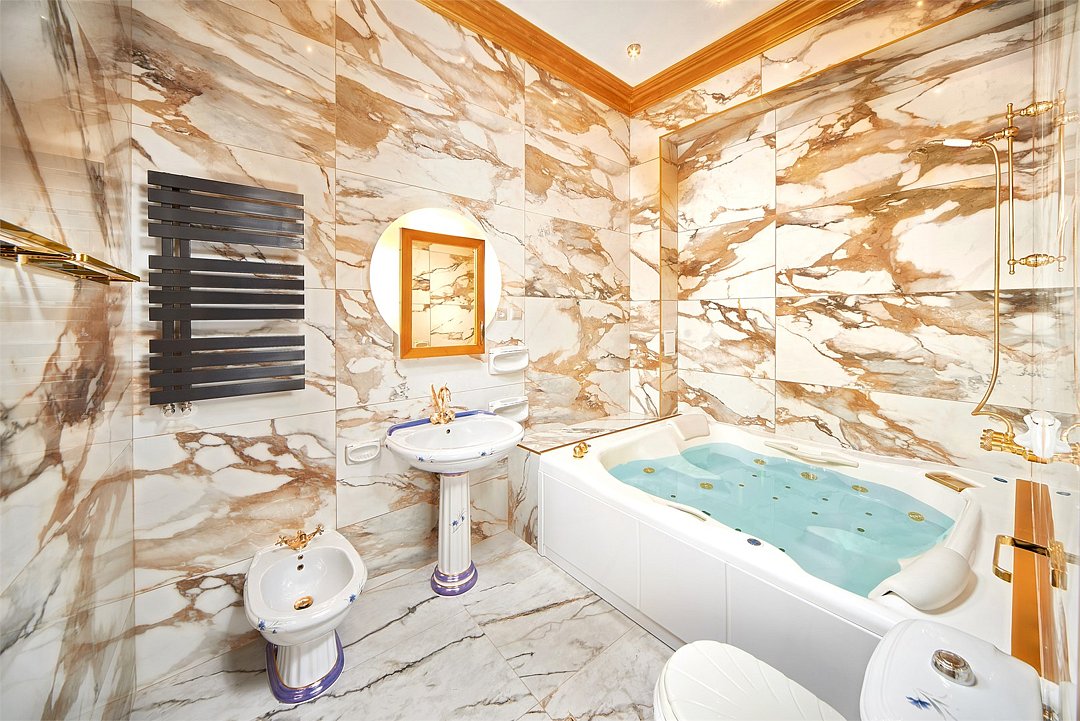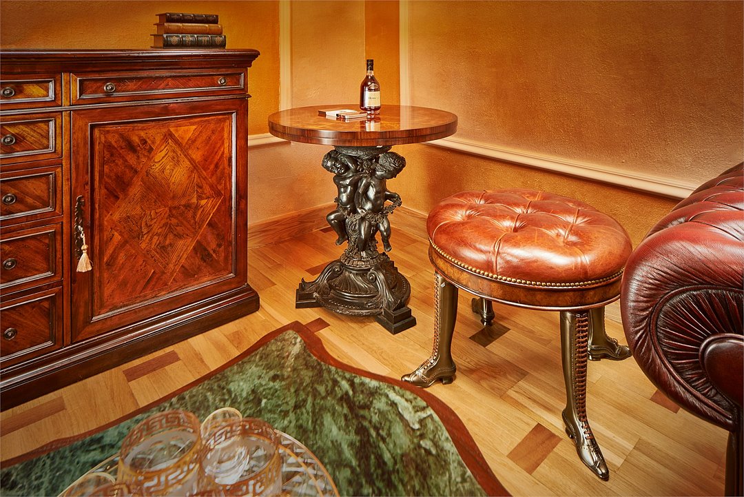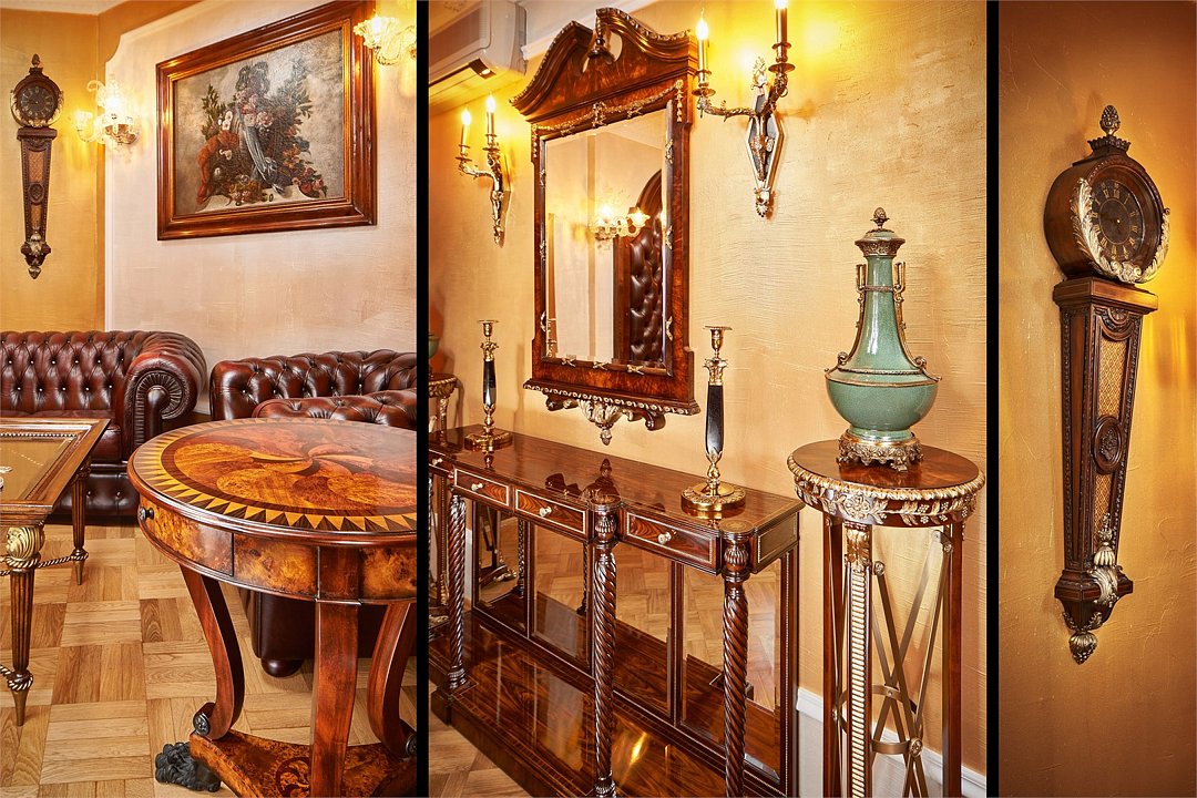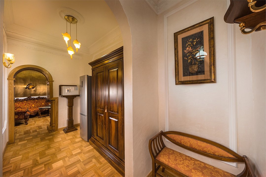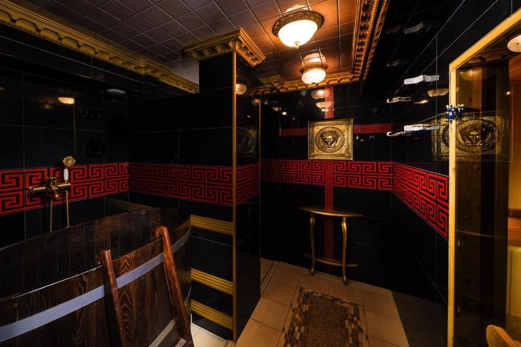 Апартаменты общей площадью 60 м2 " класса DeLux поразит Вас не только классическими интерьерами с итальянской и английской мебелью, но и роскошной ванной комнатой с элитной итальянской сантехникой "Ceramica Ala (Modellazione)". При этом королевой ванной комнаты, да и всего номера, является, конечно, джакузи итальянкой фирмы "Аlbatross" объёмом 400 литров. Расслабленный отдых после водного массажа вам обеспечит итальянский спальный гарнитур " с кроватью размера "king-size", а утром антикварные часы XIX века снова вернут вас в обстановку комфорта и роскоши. Не откажите себе в удовольствии окунуться в атмосферу наслаждения! Бар в холодильнике платный.Услуги и удобства