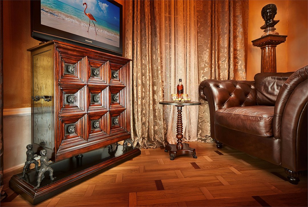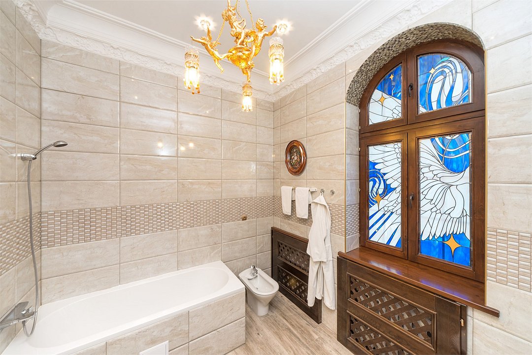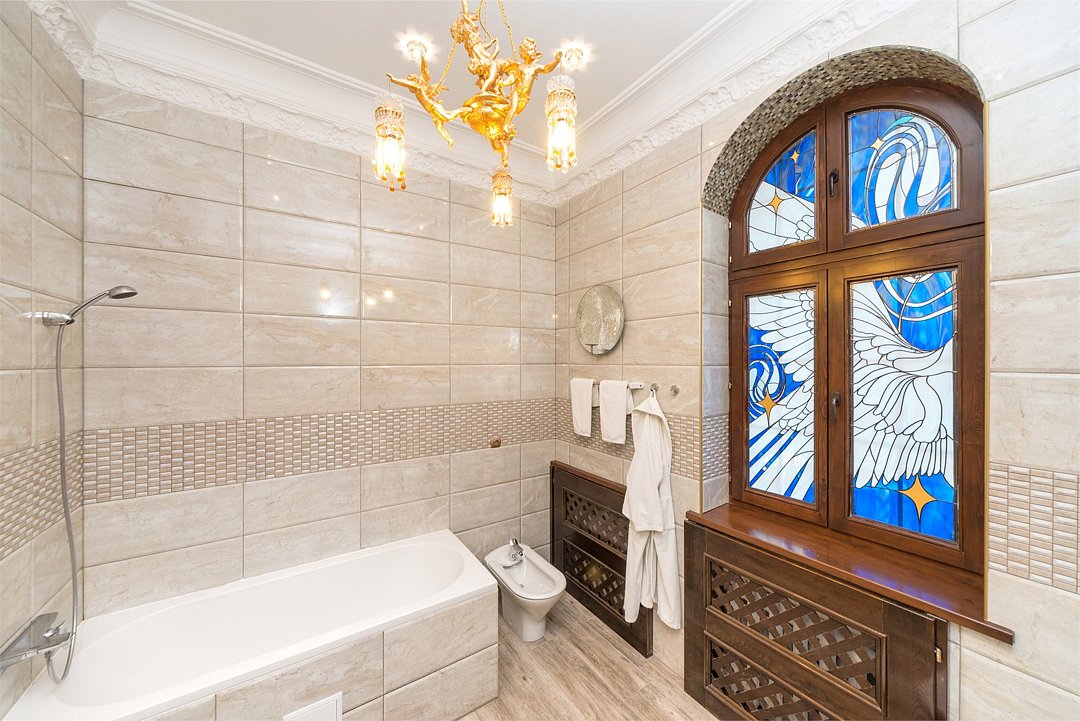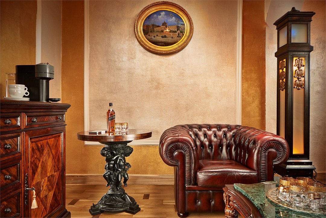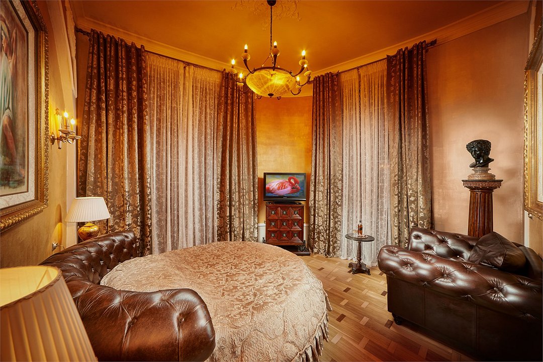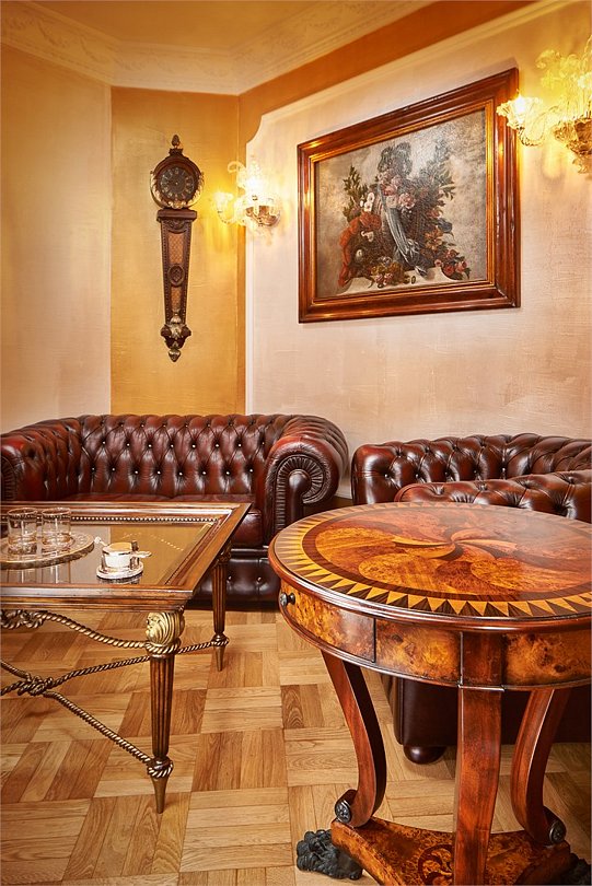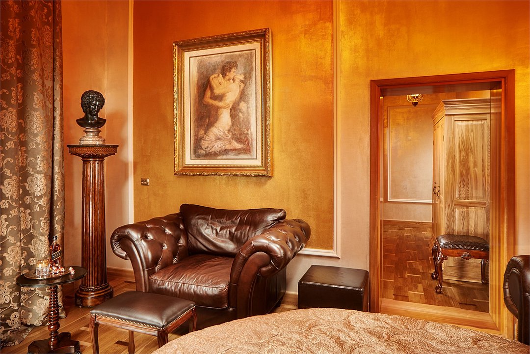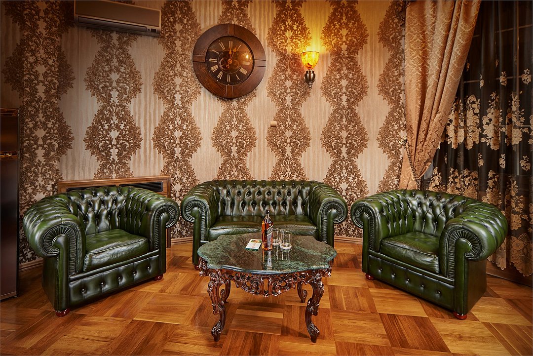 Двухкомнатные апартаменты общей площадью 75 м2 хорошо подходит для большой семьи или для дружеской компании, привыкшей к неспешным разговорам на фоне роскошного убранства. Мягкий кожаный уголок "Chester" в стиле английского консерватизма даст место для неторопливой беседы, а комнаты с раздельными входами позволят гостям, насладившись общением, спокойно отойти ко сну. После горячей ванны приятно пройтись босиком по дубовому паркету, а затем заснуть в обстановке комфорта и умиротворения. Бар в холодильнике платный.Услуги и удобства