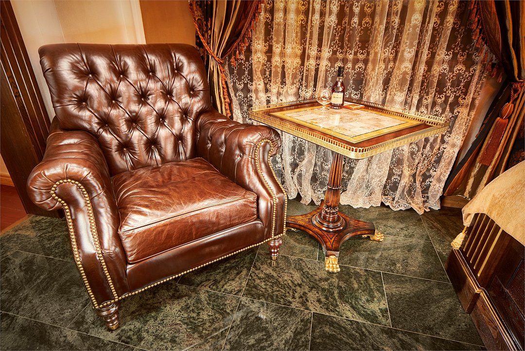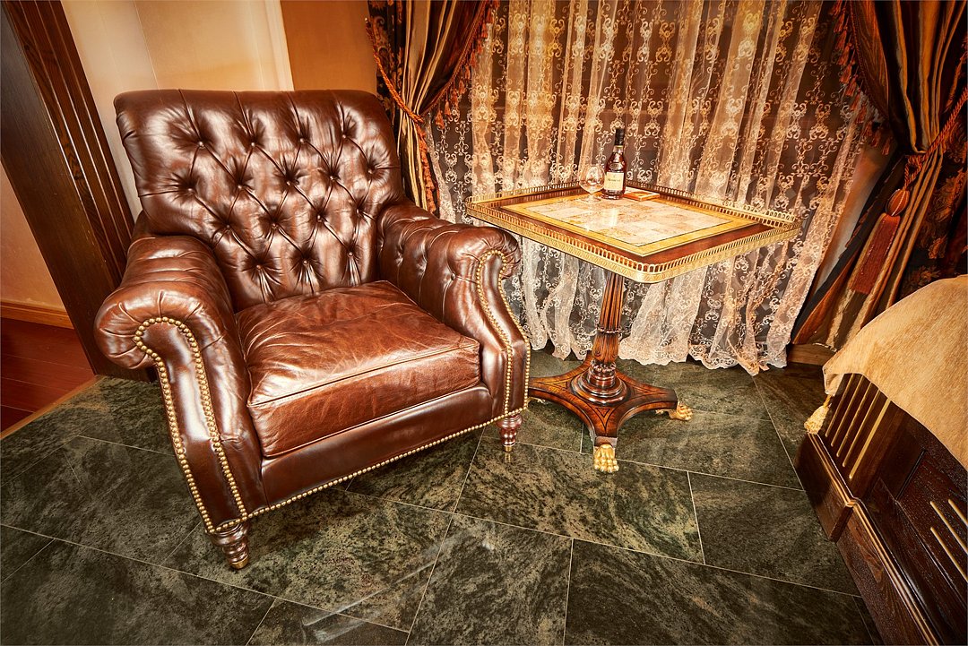 Двухкомнатные апартаменты общей площадью 60 м2 хорошо подходит для большой семьи или для дружеской компании, привыкшей к неспешным разговорам на фоне роскошного убранства. Мягкое кожаное кресло "Chester" в стиле английского консерватизма даст место для неторопливой беседы, а комнаты с раздельными входами позволят гостям, насладившись общением, спокойно отойти ко сну. После горячей ванны приятно пройтись босиком по дубовому паркету, а затем заснуть в обстановке комфорта и умиротворения. Бар в холодильнике платный.Услуги и удобства