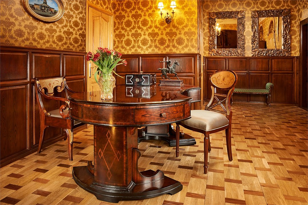 Классические интерьеры, как общий стиль Виллы Эрмитаж Kaliningrad , получили в этом двухместном номере общей площадью 48 м2 своё воплощение в виде колониального стиля. Умеренная доза экзотики в виде деталей интерьера и светового оформления здесь удачно сочетается с дубовыми полами и общим консерватизмом мебели, украшенной ручной резьбой. Дубовые паркетные полы дополняют общую атмосферу спокойствия, в которую следует окунуться путешественнику после долгого пути. Бар в холодильнике платный.Услуги и удобства