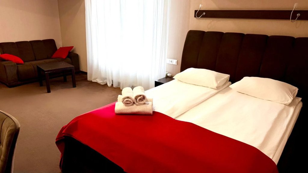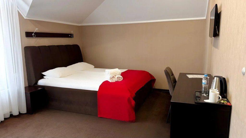 Номер уютно обставлен и оснащён необходимым, чтобы отдохнуть после долгого и насыщенного дня. Имеются телевизор. Перечисленные услуги есть не во всех номерах.