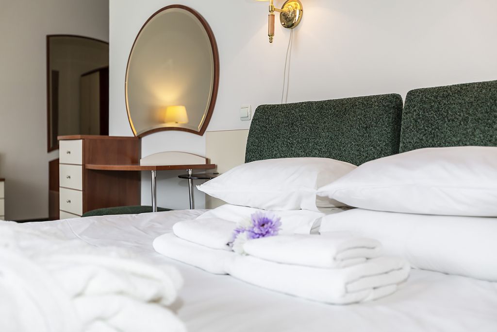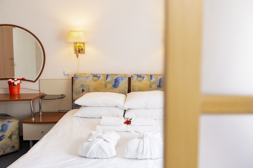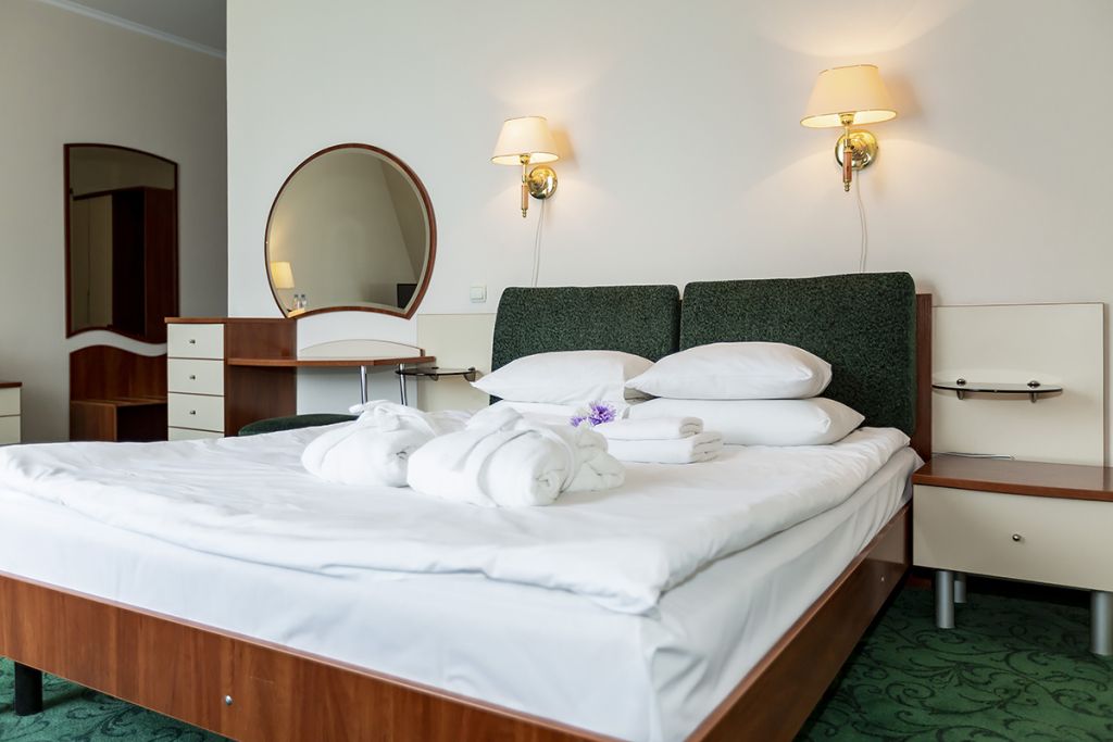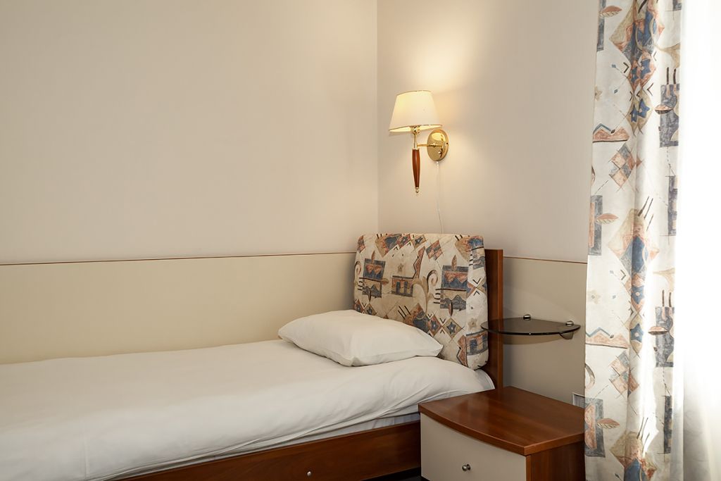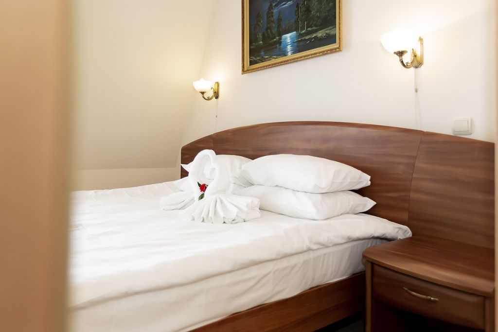 Уютные номера для одно- или двухместного размещения, в комнате установлена двуспальная кровать, в ванной комнате – душевая кабина. Возможна установка детской кроватки.
