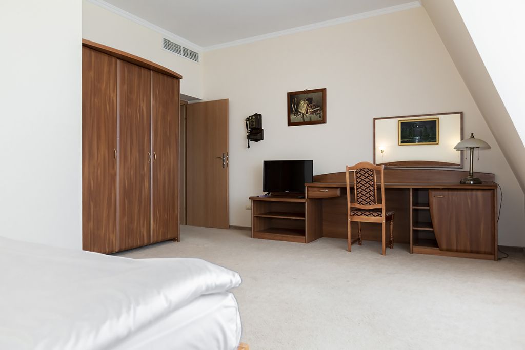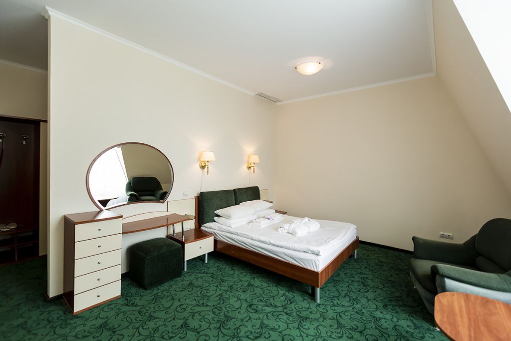Комфортные просторные номера для размещения одного-двух человек, оформленные в легком европейском стиле. Ванная комната оборудована ванной. Имеется возможность для дополнительного размещения взрослого или ребенка.