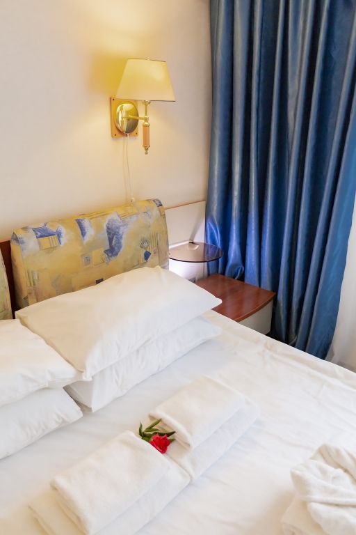 Просторные номера с двумя раздельными кроватями, в ванной комнате – душевая кабина. Имеется возможность для дополнительного размещения взрослого или ребенка.