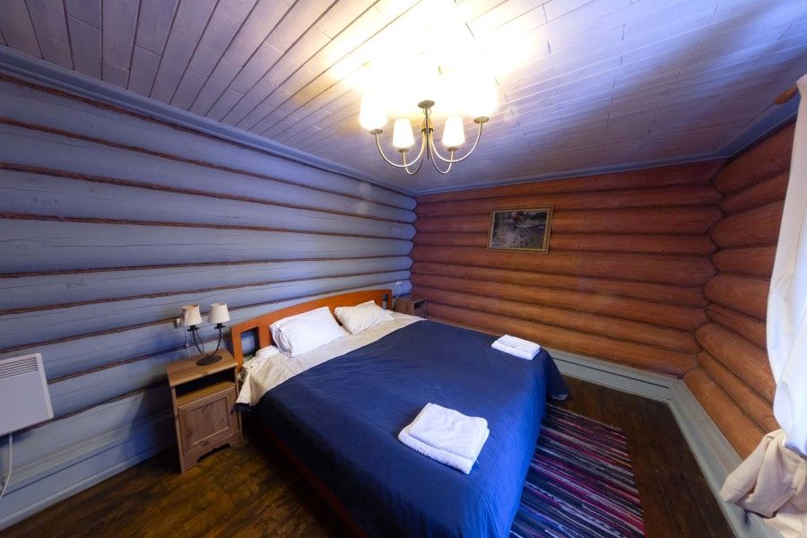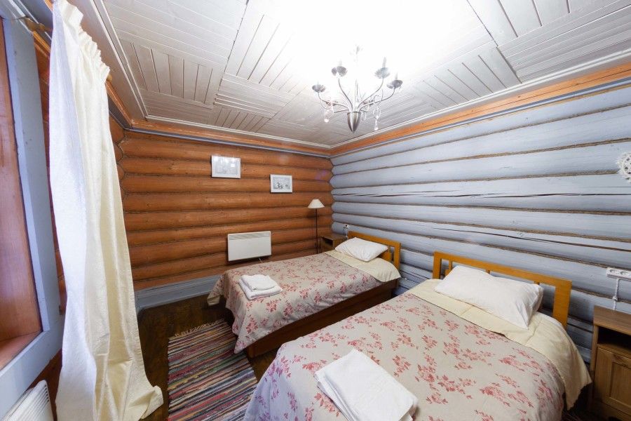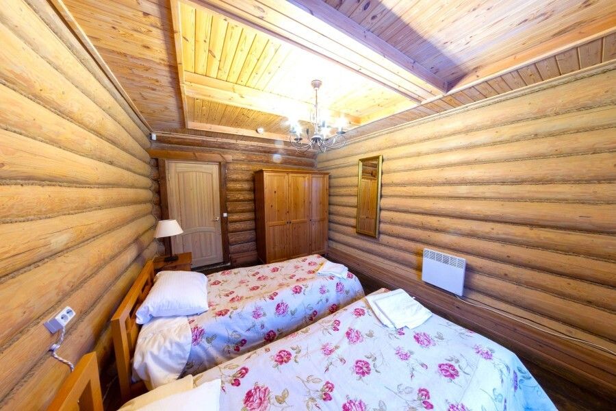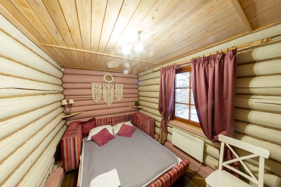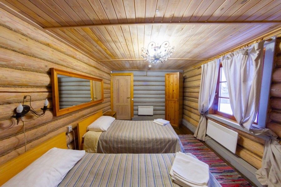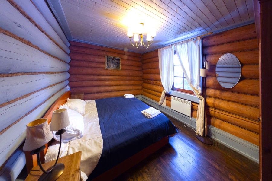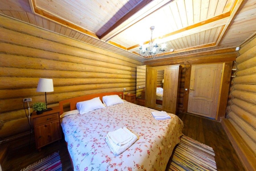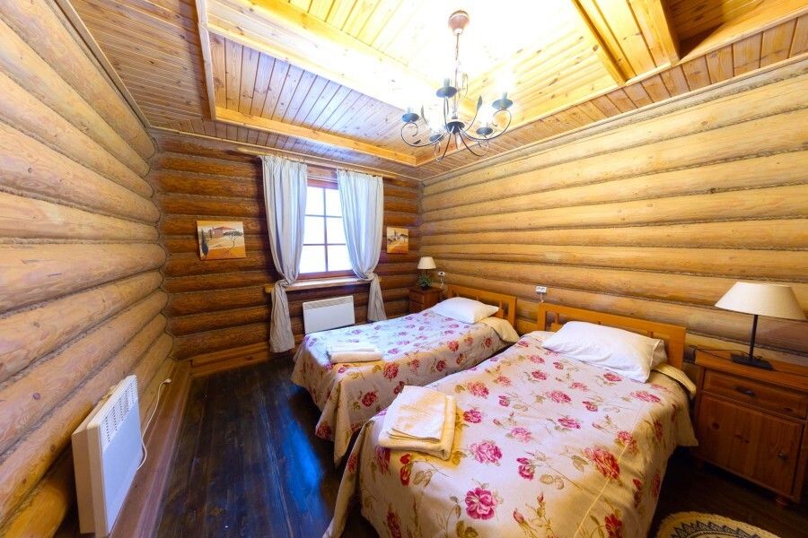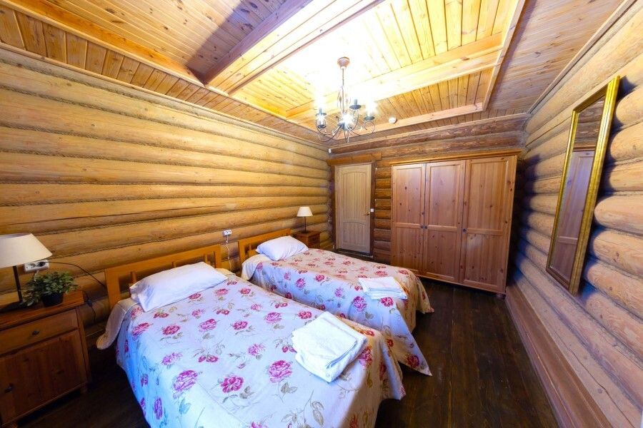 К расположению гостей предлагаются отдельно стоящие 1-этажные и 2-этажные деревянные домики разного уровня вместимости. Внутренняя отделка комнат уютная, выполнена из натуральных материалов. Установлены кровати, раскладные диваны, шкафы, журнальные столики. Из бытовой техники предлагаются микроволновые печи, мини-холодильники, электрические чайники. Санузел индивидуальный, с душевой кабиной. К услугам гостей полотенца и туалетные принадлежности.