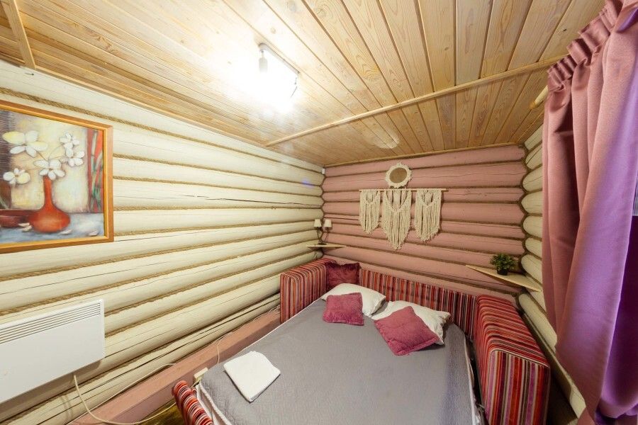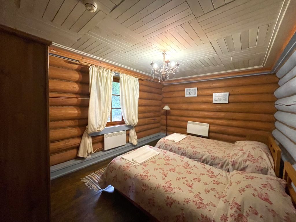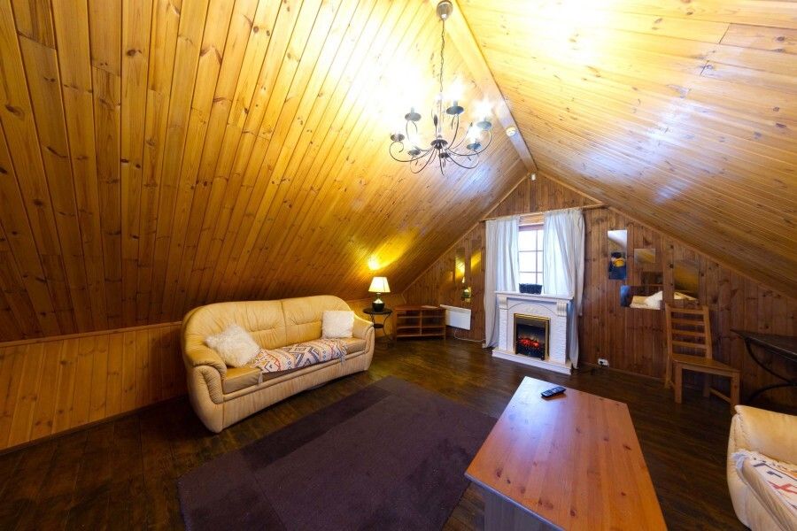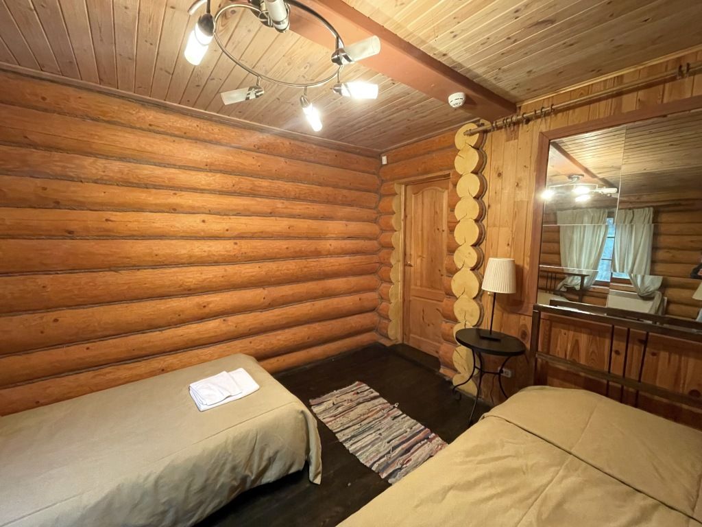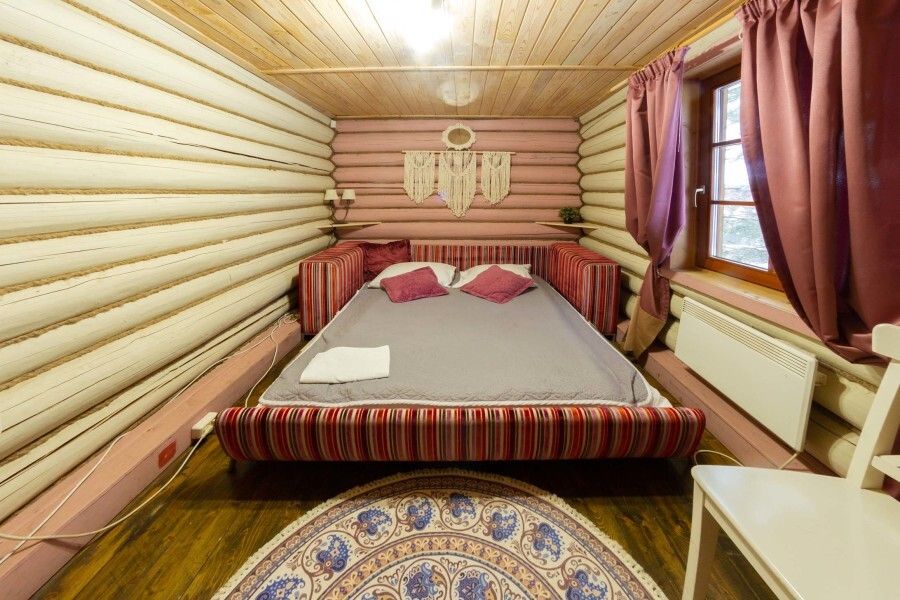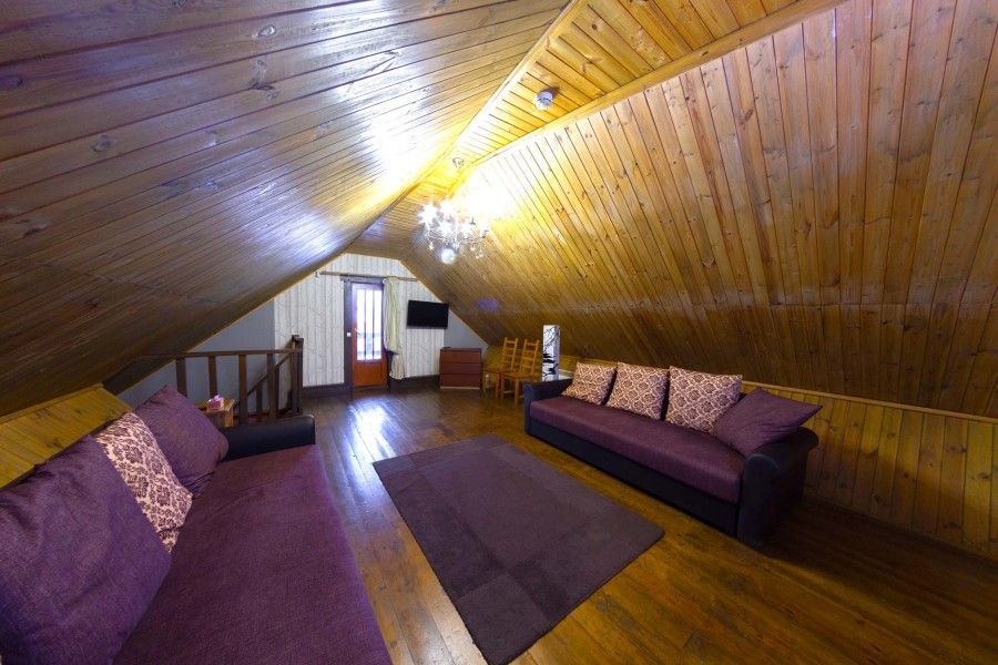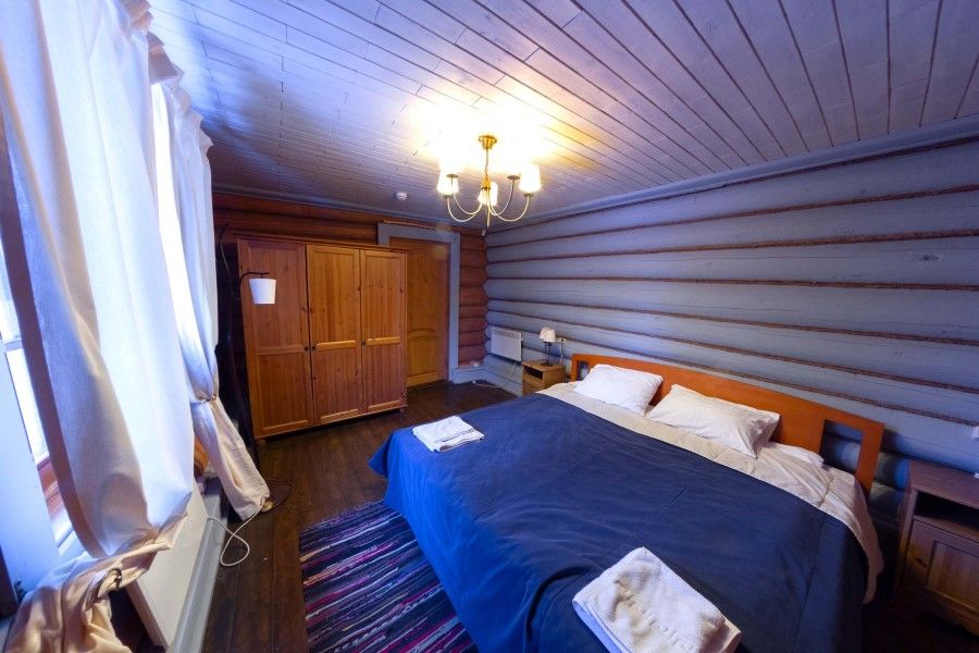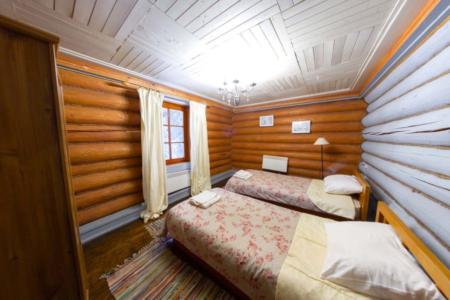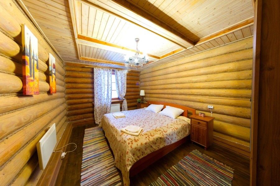 К расположению гостей предлагаются отдельно стоящие 1-этажные и 2-этажные деревянные домики разного уровня вместимости. Внутренняя отделка комнат уютная, выполнена из натуральных материалов. Установлены кровати, раскладные диваны, шкафы, журнальные столики. Из бытовой техники предлагаются микроволновые печи, мини-холодильники, электрические чайники. Санузел индивидуальный, с душевой кабиной. К услугам гостей полотенца и туалетные принадлежности.
