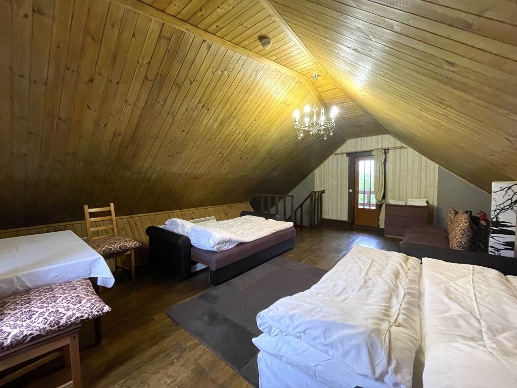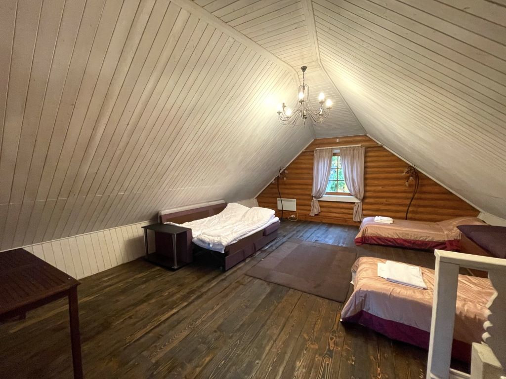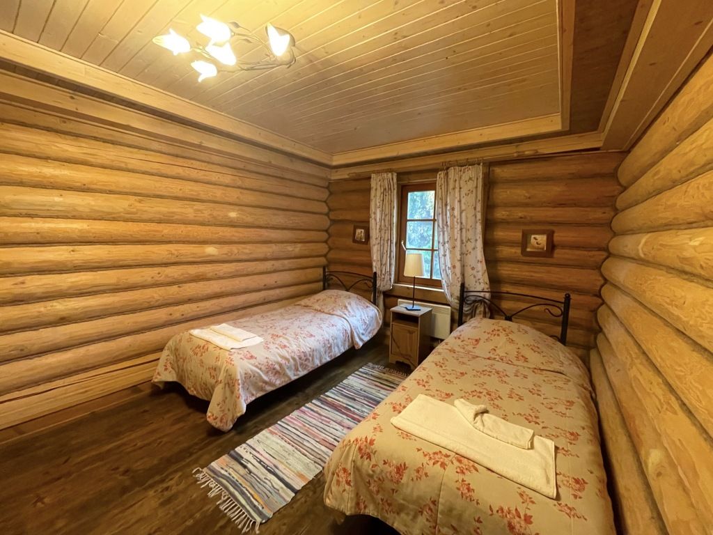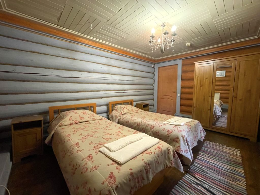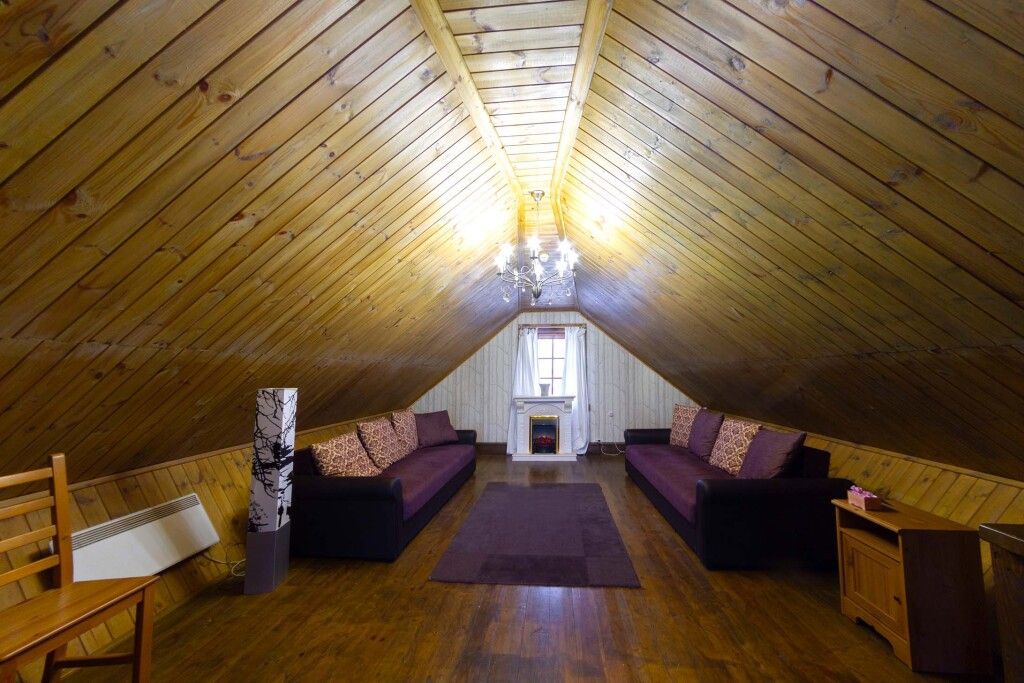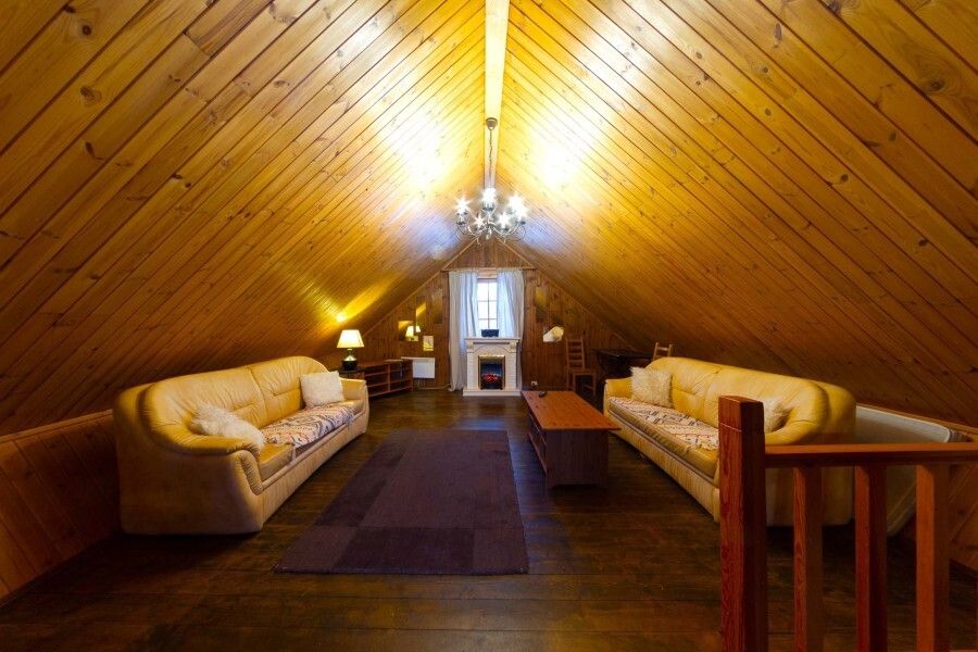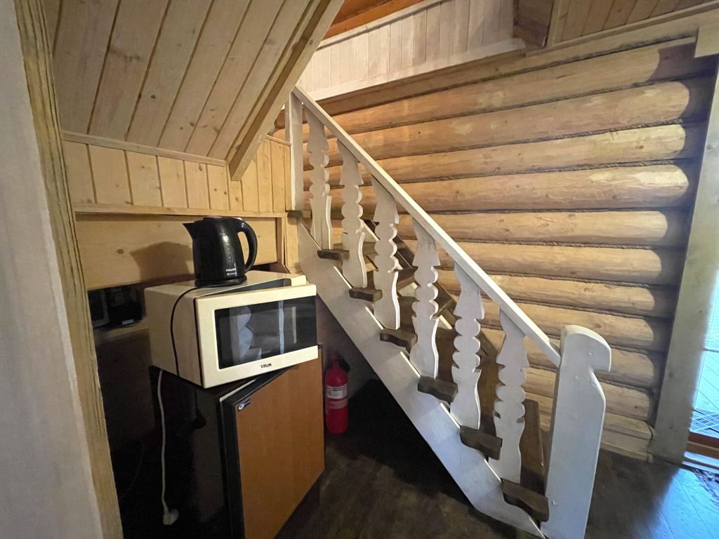 К расположению гостей предлагаются отдельно стоящие 1-этажные и 2-этажные деревянные домики разного уровня вместимости. Внутренняя отделка комнат уютная, выполнена из натуральных материалов. Установлены кровати, раскладные диваны, шкафы, журнальные столики. Из бытовой техники предлагаются микроволновые печи, мини-холодильники, электрические чайники. Санузел индивидуальный, с душевой кабиной. К услугам гостей полотенца и туалетные принадлежности.