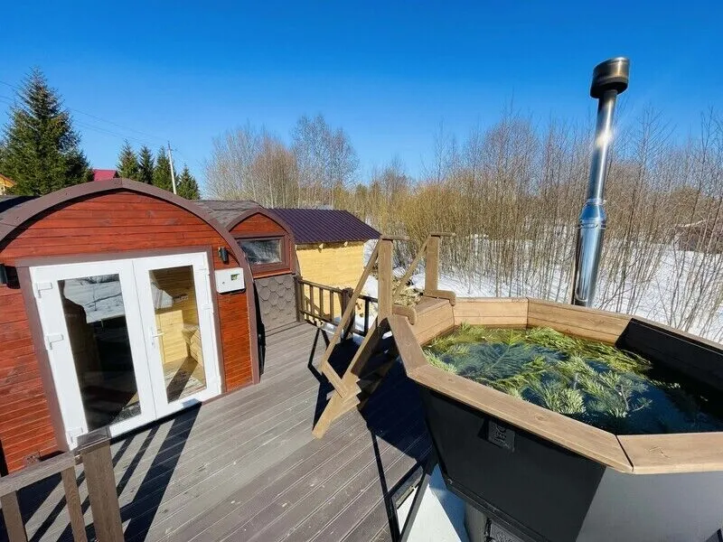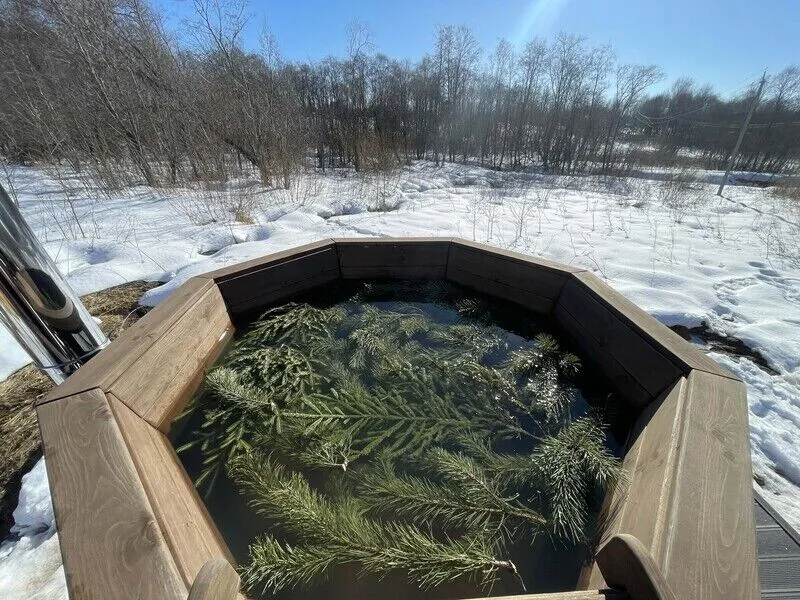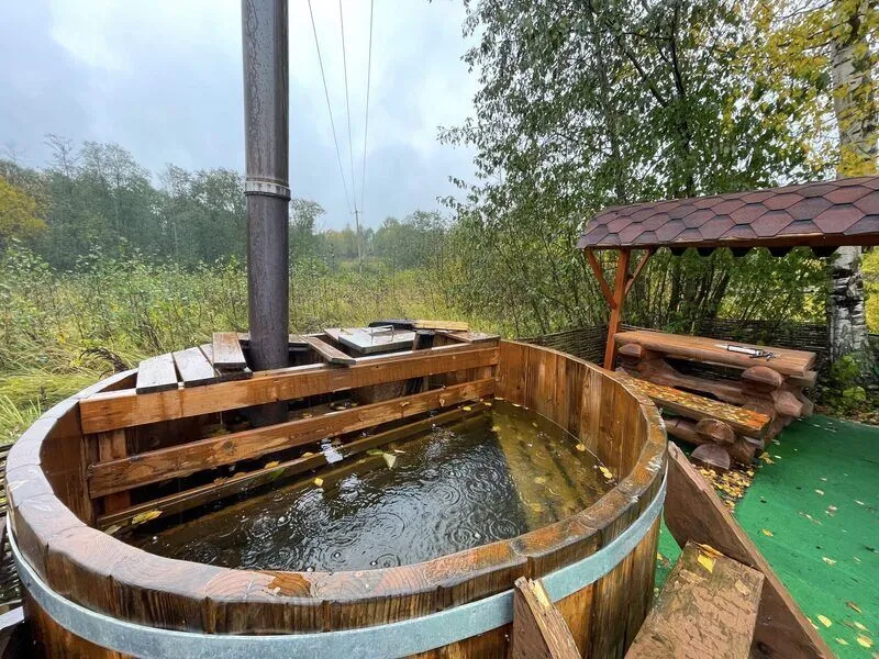 Инфраструктура: тапочки, чан, зона отдыха, шапочки, душМинимальное время аренды: 3 часаС мангалом и летней беседкой. Продление — 1000 ₽/час. Банные принадлежности за отдельную плату.