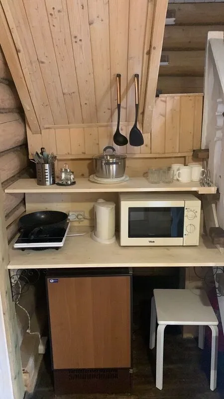 В номере: мини-кухня (холодильник, индукционная плитка ,микроволновка, чайник, набор посуды)