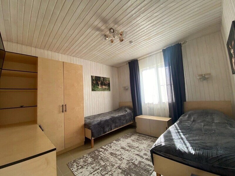 На территории расположен гостиничный комплекс, состоящий из 9 уютных двухместных номеров. В данном номере есть две односпальные кровати.