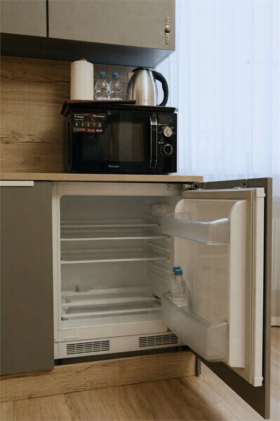 Гости отеля могут воспользоваться общей кухней для самостоятельного приготовления пищи. На кухне имеется СВ печь, холодильники, электрическая варочная панель, посуда и просторный стол для хорошей компании.