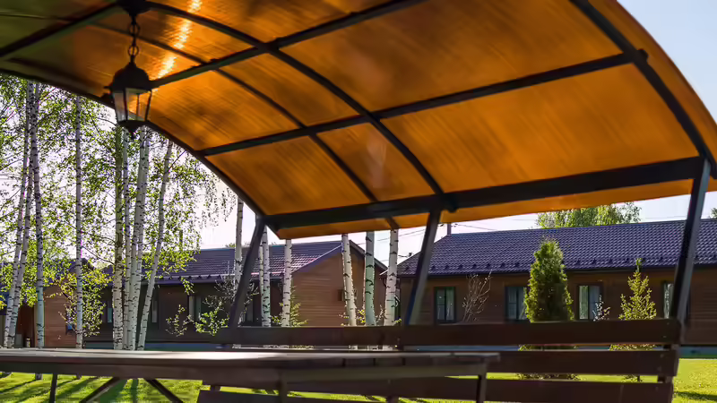 Уютная веранда загородного комплекса, расположенная в живописном уголке с чудесным видом на парк, будет идеальным местом для проведения мероприятия или отдыха в кругу друзей. Вместимостью до 60 человек, она оснащена профессиональной акустической системой с караоке, создавая комфортную атмосферу для Ваших гостей.