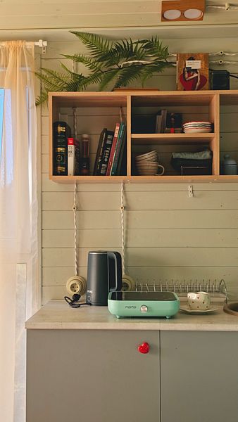 - в кухонной зоне: посуда, микроволновка, чайник, электрическая плитка, холодильник;