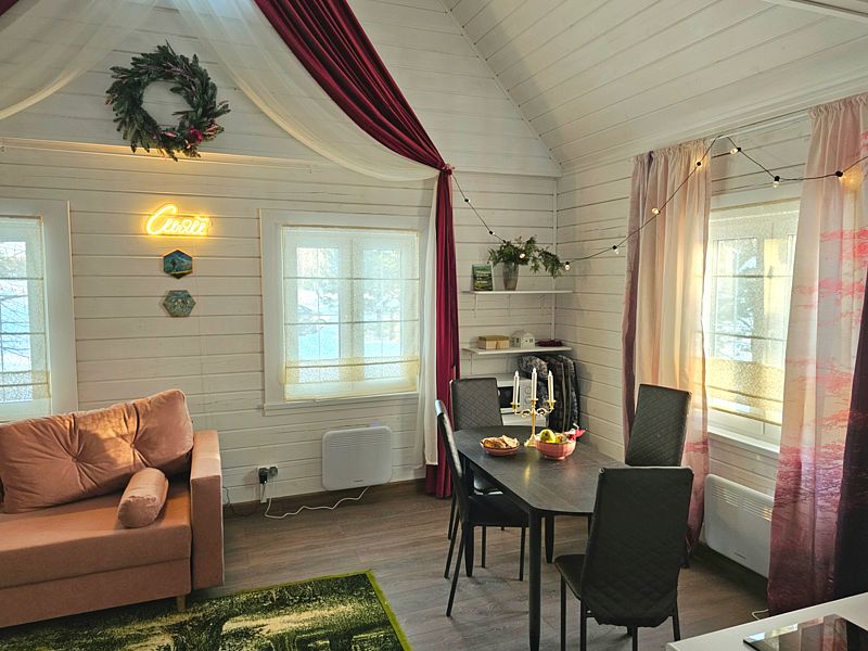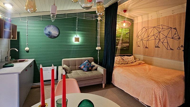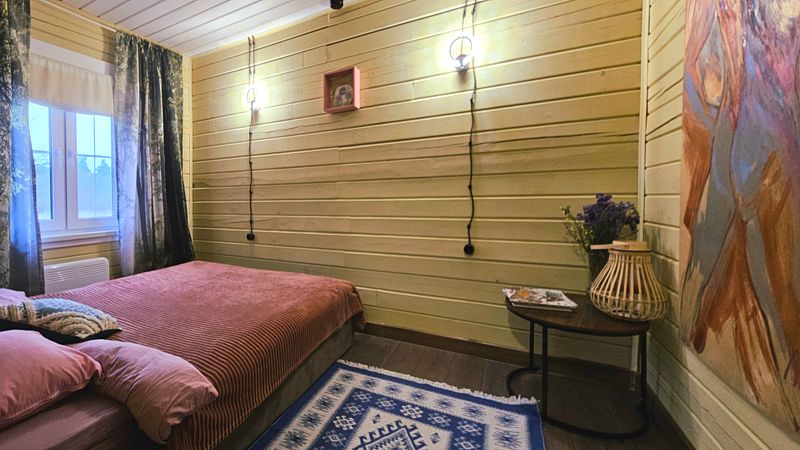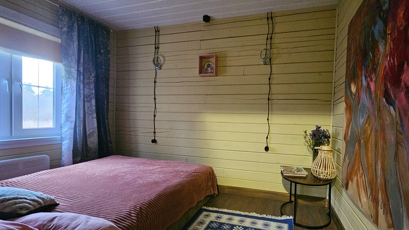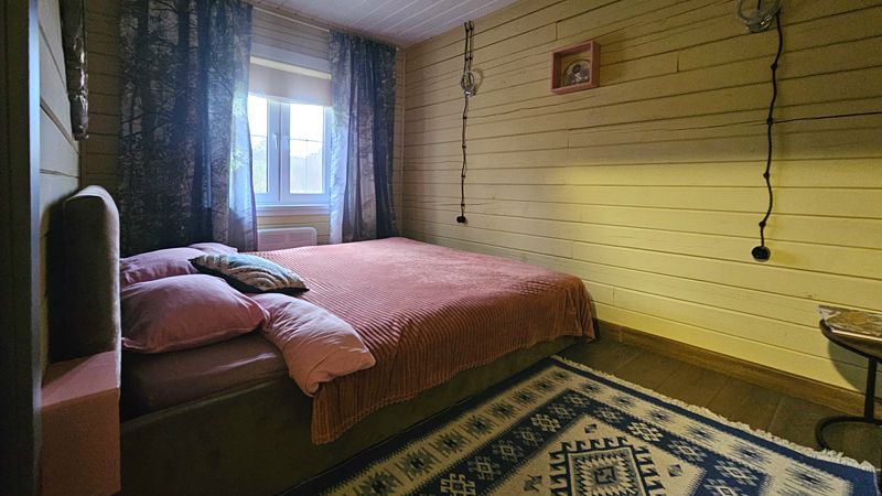 - размещение до 8 человек: в каждой спальне двуспальная кровать, диван на двоих в гостиной, раскладушка;