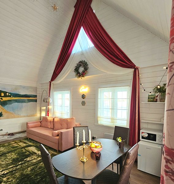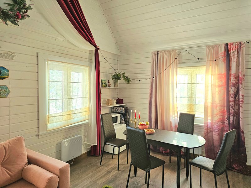 Здесь Вы сможете вдоволь насладиться тишиной, свежим воздухом, красивыми пейзажами и чистой речкой, а дополнят отдых удобства, которыми оснащены дома. На выбор представлены «Дом на лугу» и «Дом в лесу», расположенный в 10 минутах от села Медное.