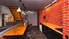 Подходит для размещения до 6 гостей. На первом этаже расположена студия площадью 42 кв. м, душевая, туалет. Есть диван, барный стол и 6 стульев, телевизор. На втором этаже есть просторный балкон второго света 16 кв. м, две спальни по 10 кв м, санузел. Для размещения гостей предоставляются двуспальные кровати, есть два телевизора. Кухня оборудована всей необходимой техникой, есть холодильник, индукционная плита на две конфорки, микроволновая печь, духовой шкаф.